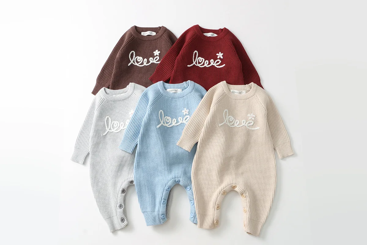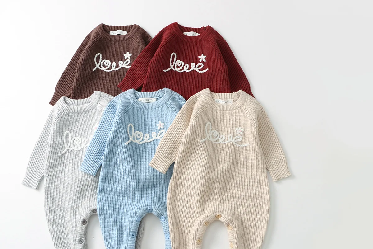 0-24M Warm Baby Clothing Knit Romper Newborn Romper Infant Toddler Boy Girl Long Sleeve Jumpsuit Embroidery Fall Spring Outfits