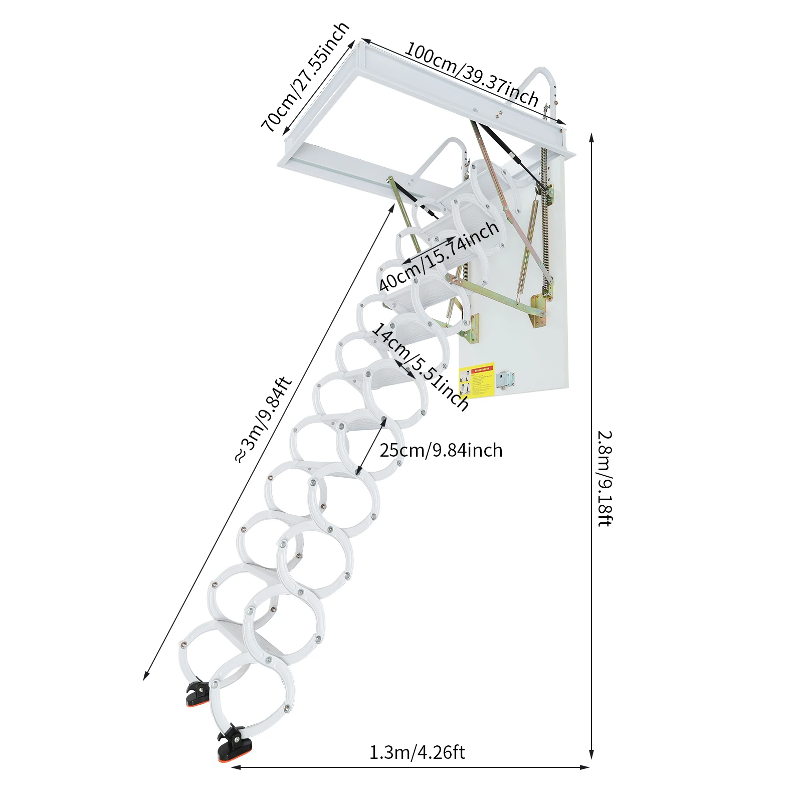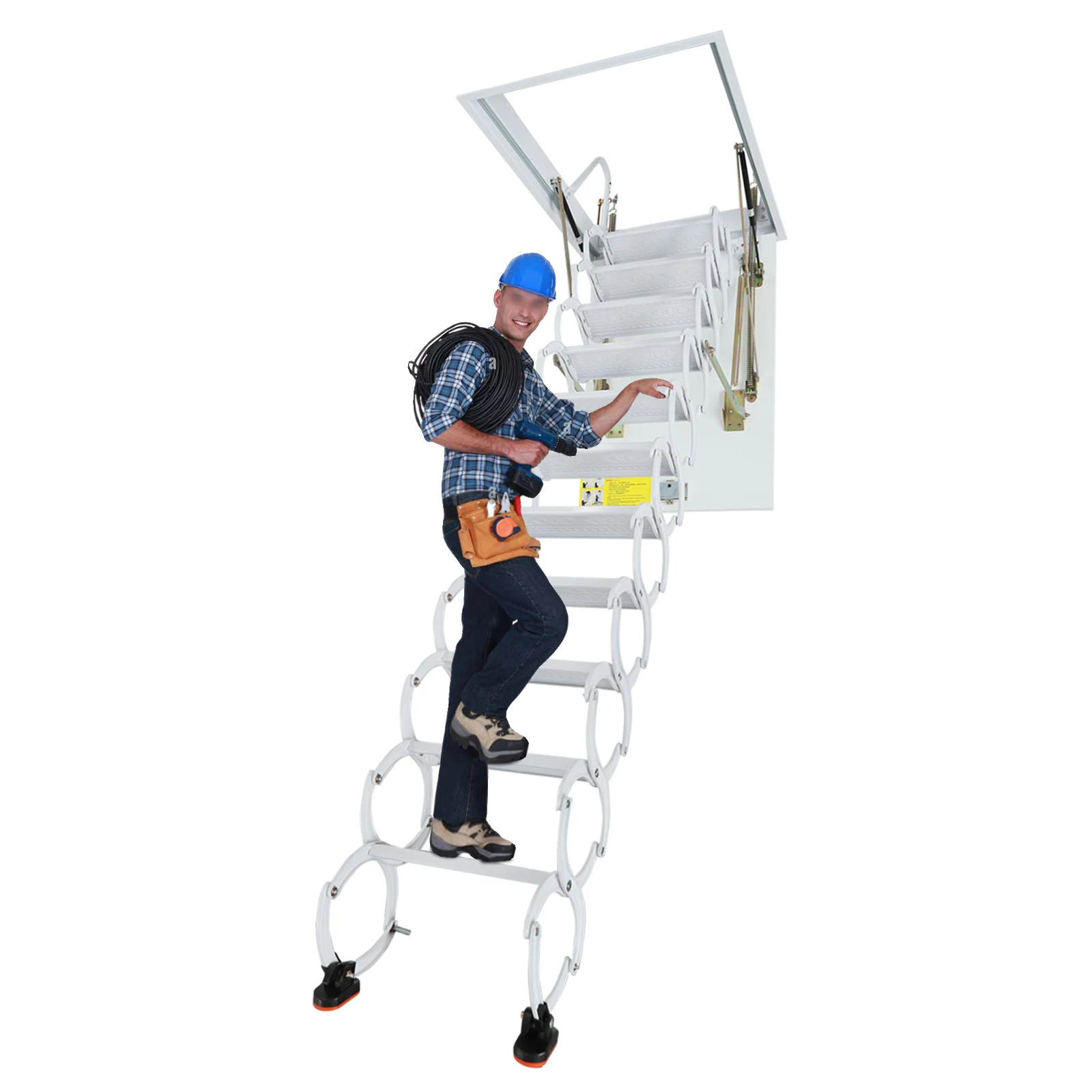 Our folding attic ladder is the ideal choice for convenient access to your attic. It can solve the problem of going up and down the ladder in limited spaces. The high-class materials and optimized structure provide high load-bearing capacity, ensuring stability during use. The retractable design allows the ladder to fold when not in use, saving floor space. We believe it will provide you with an excellent experience of going up and down the ladder.