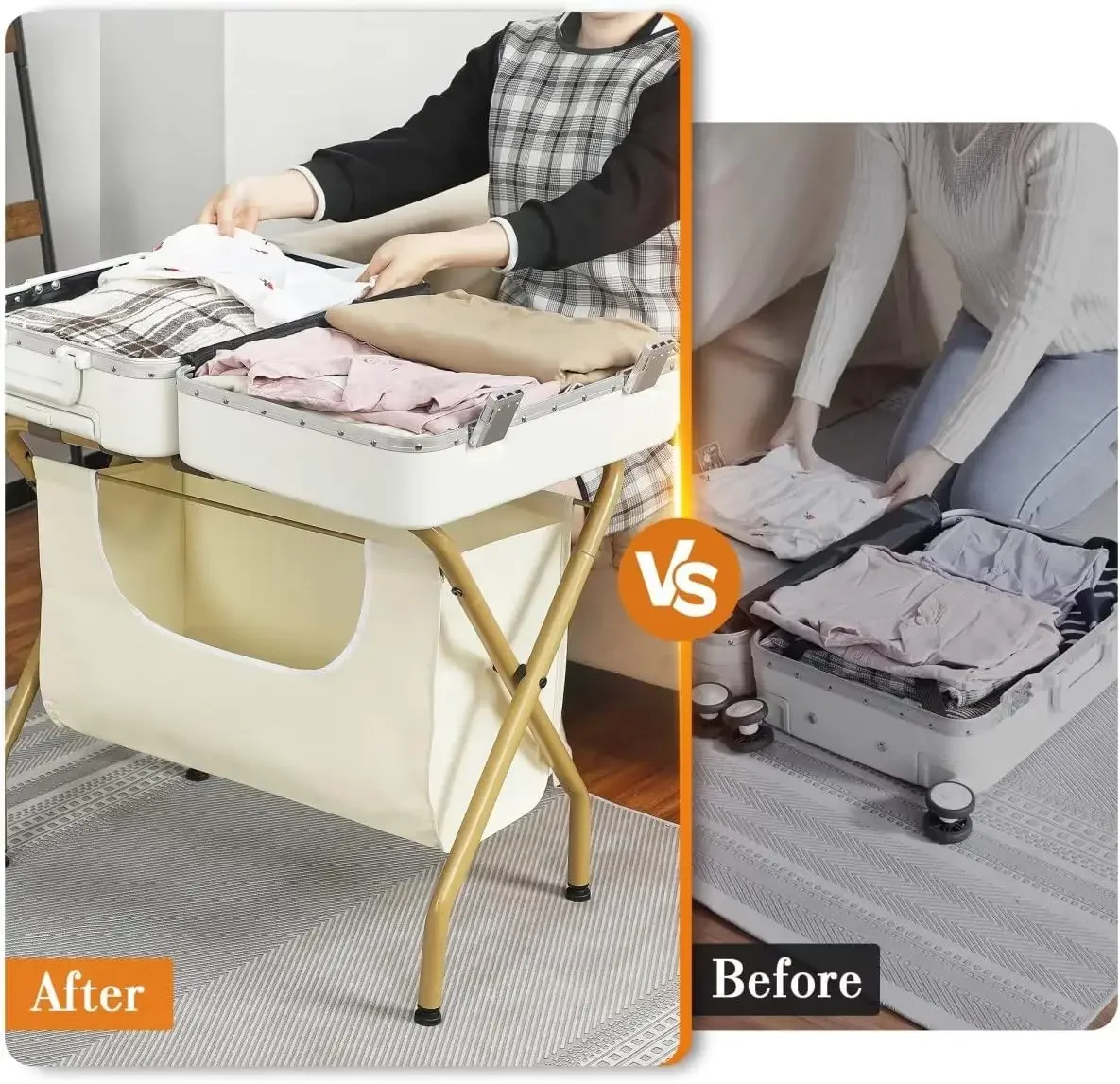 - 【Convenient Removable Laundry Bag】Having a luggage rack for guests and the bag allows them to separate dirty laundry without messy piles, dirty clothes storage underneath so that the luggage could keep clean in the whole journey; while if do not need, just dismantle it