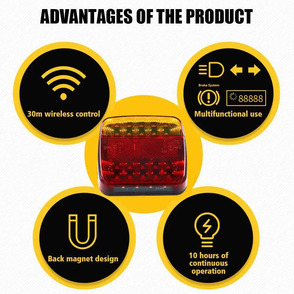 2 Piece Magnetic Wireless Trailer Lights Waterproof Reflective Lens Truck LED Taillights Towing Light Kit For Truck RV Camper Boat