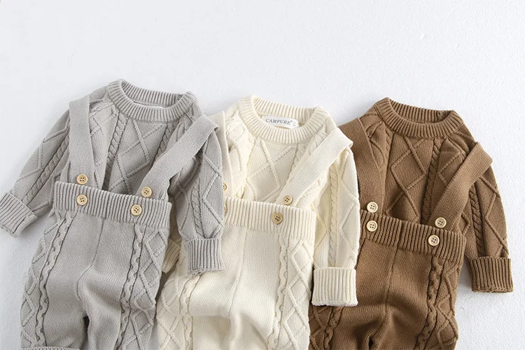 2025 Baby Autumn and Winter New Twist Knitted Overalls Set Boys and Girls Pullover Sweater Jumpsuit Newborn Photography Romper