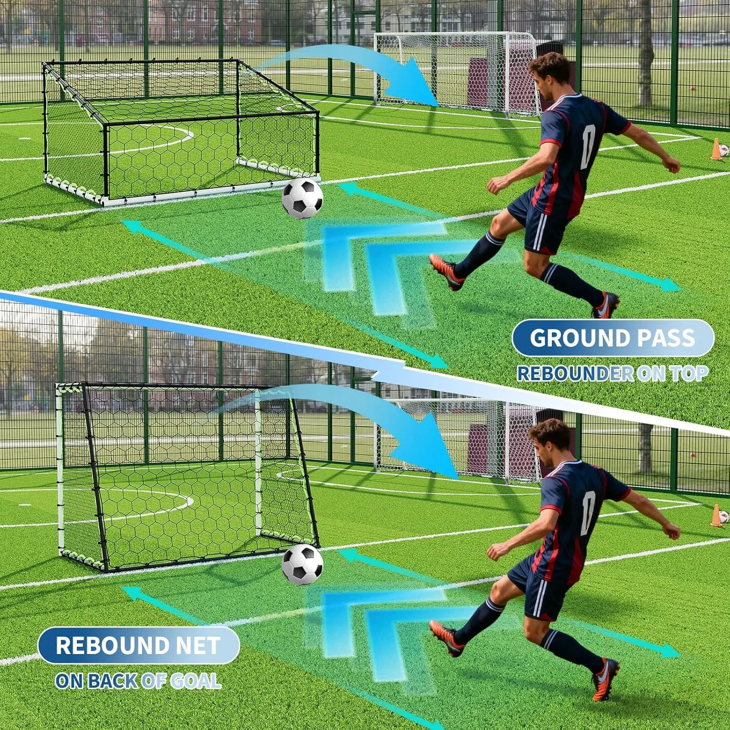 3-in-1 Multi-Functional Design – Combines a high-rebound net, low-rebound net, and goal in one compact setup, supporting a wide range of soccer drills including , volleying, and precision passing.