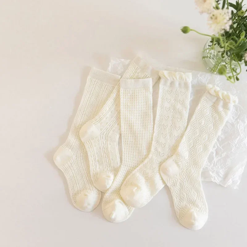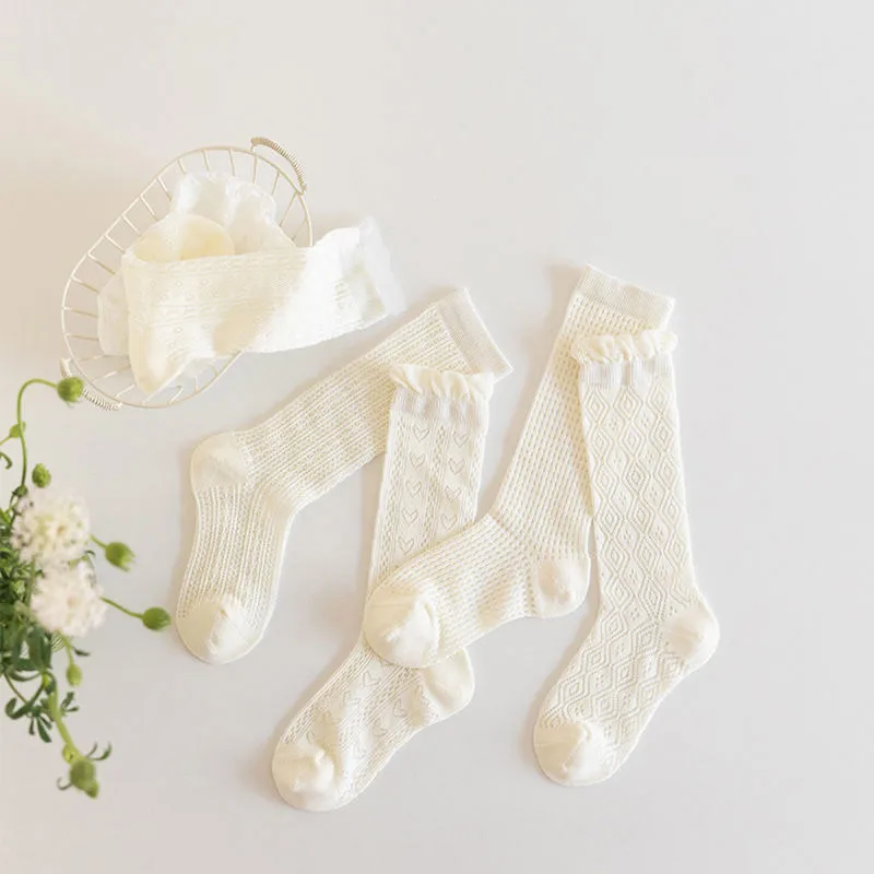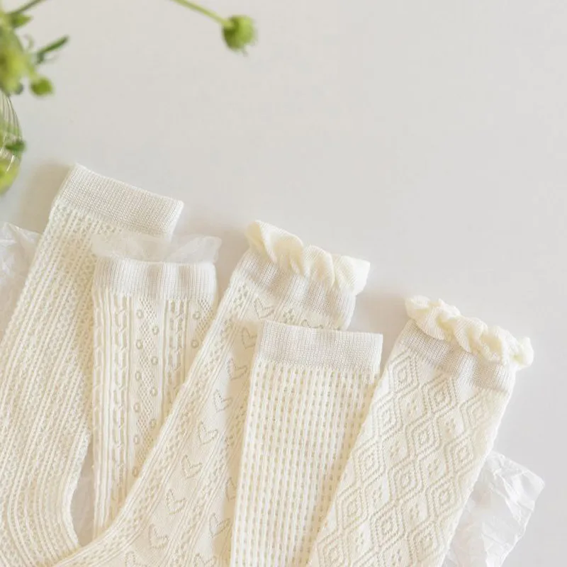 3Pairs Princess White Lace Ruffle Stockings Girl Summer Mesh Sock Thin Breathable Kids Long Socks 3-12Year Children Calf Socks