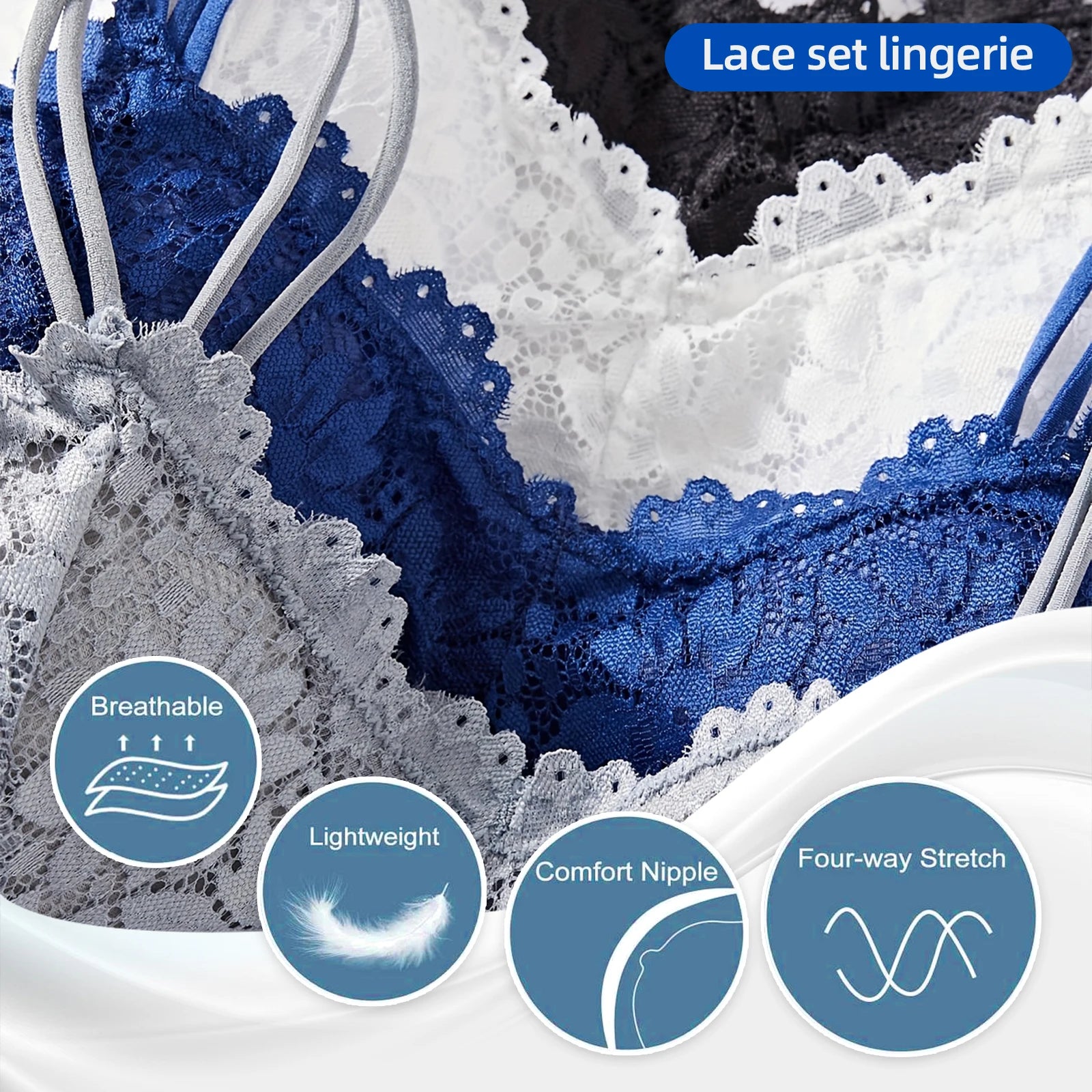 Lace Bra & Panties Set: 4-Color Romantic Lingerie with Adjustable Straps