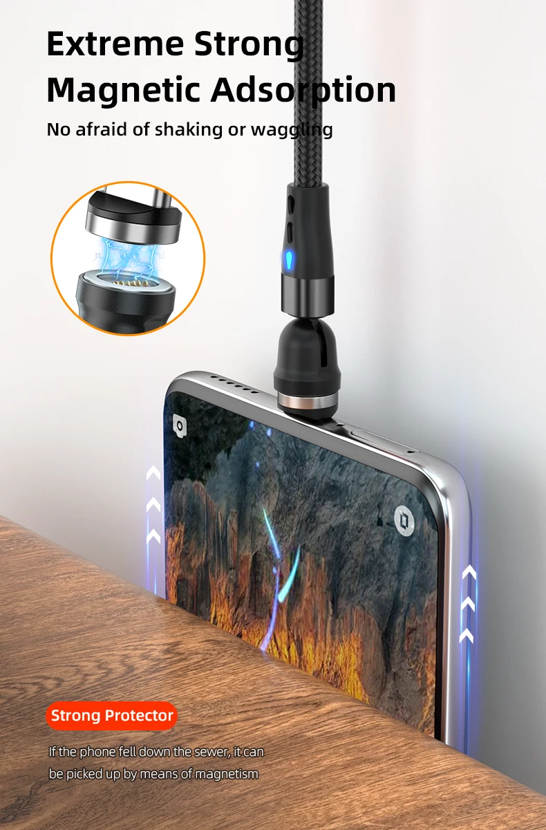 540 Rotate 5 A Magnetic Cable: For iphone Huawei Xiaomi POCO Samsung Realme