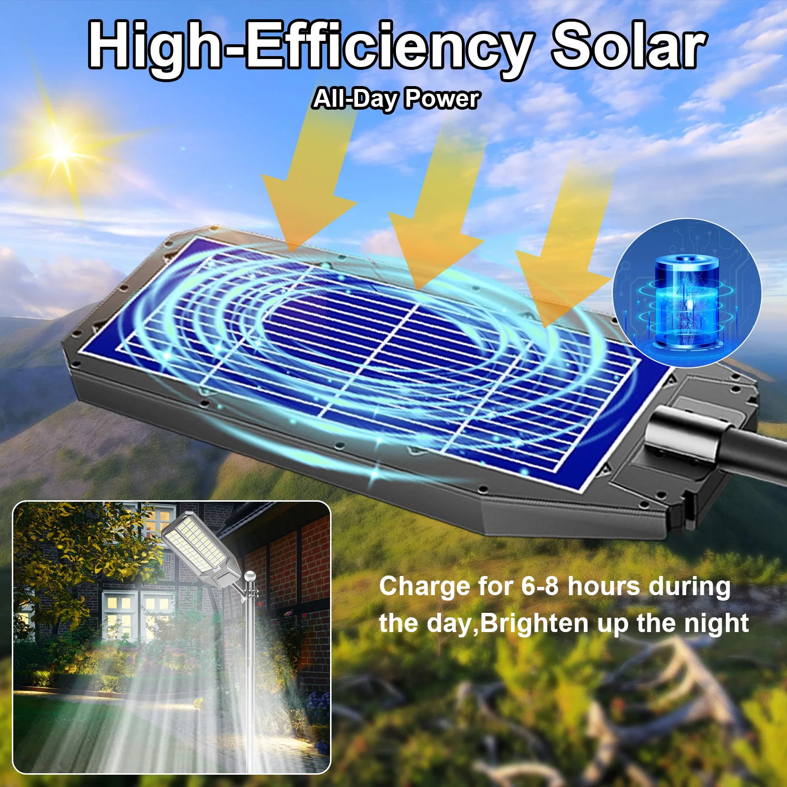 6Pack 8000W Super Bright Outdoor Solar Lights, Outdoor Street Lights, Daylight Lighting Multiple Modes, Garden Lighting With Int