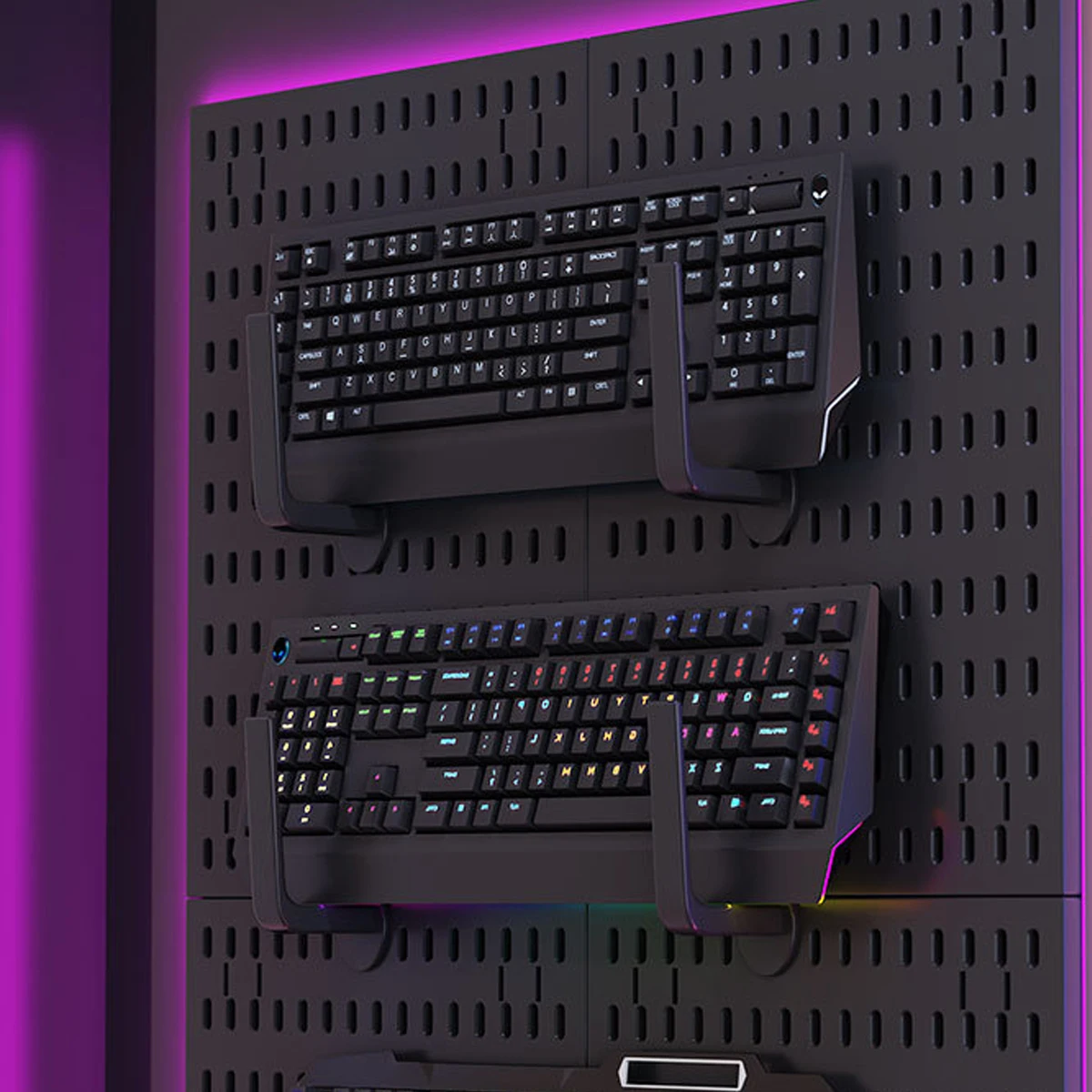 Equipped with accessory-specific items like curved hooks for headphones, holders for gaming controllers, and dedicated mounts for keyboards and mice, ensuring ideal placement and protection for your devices.