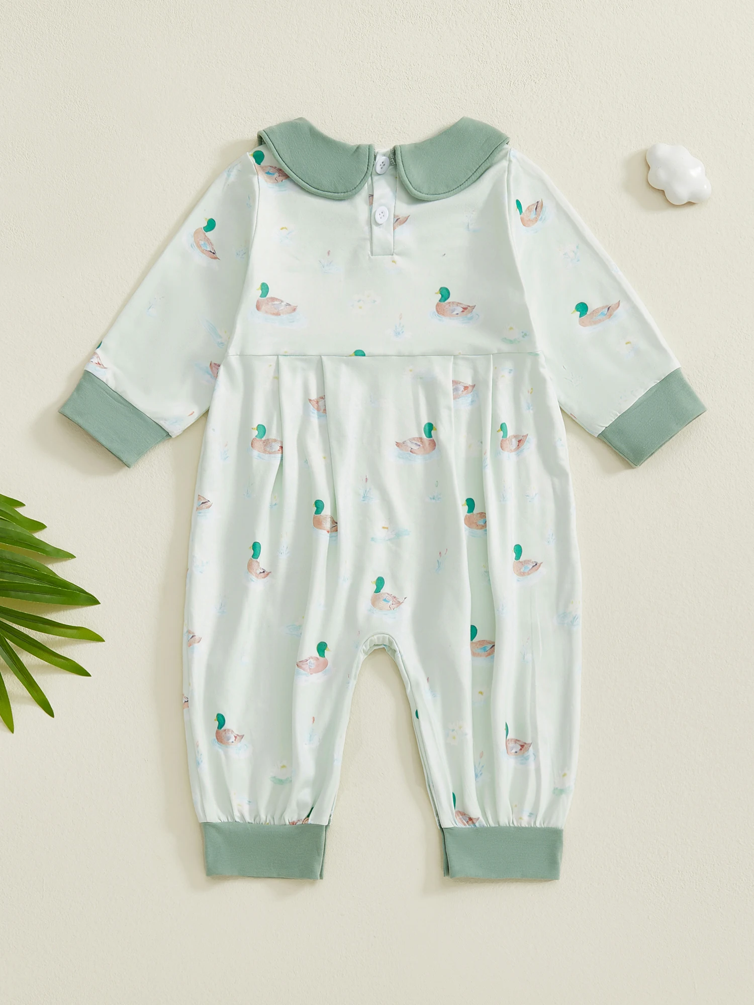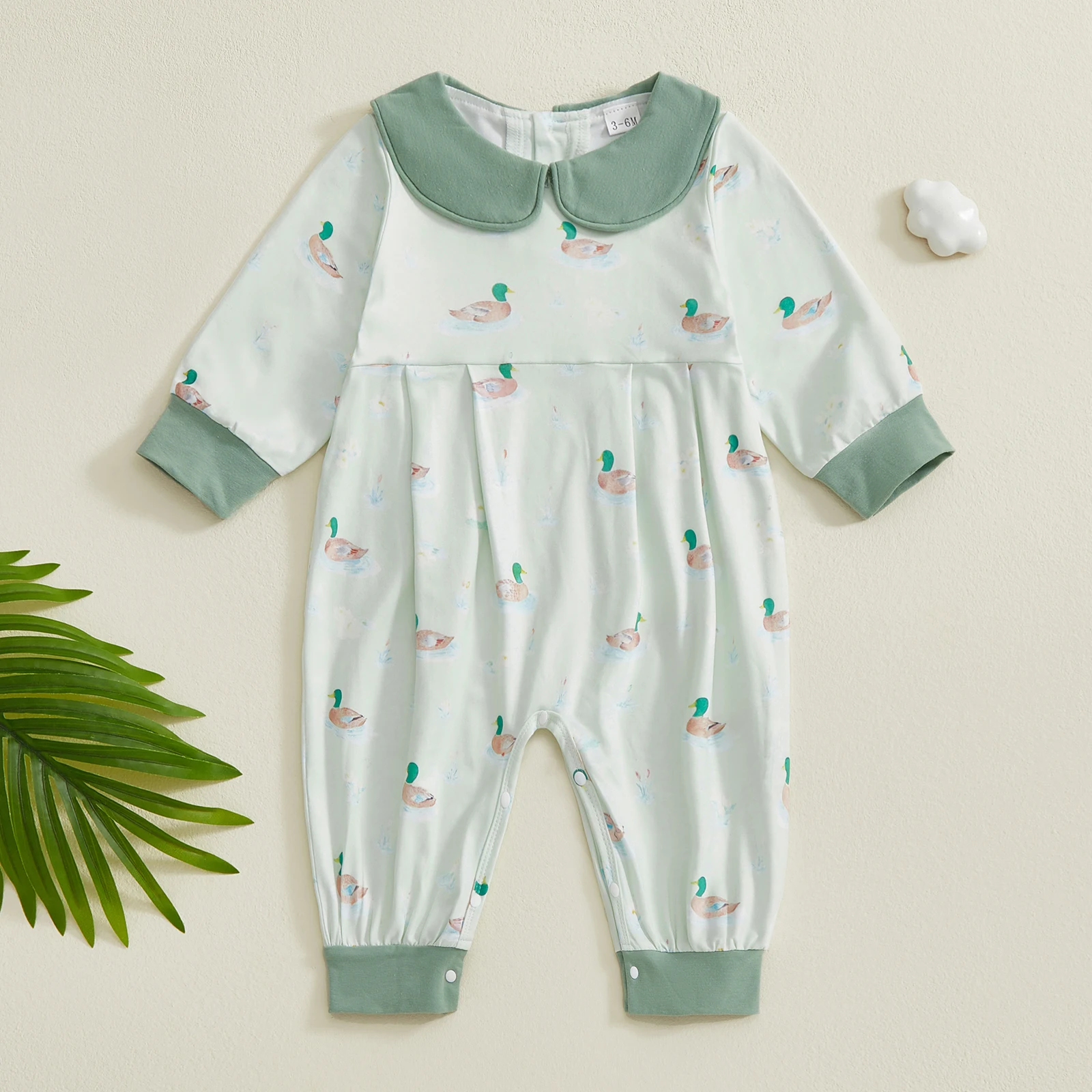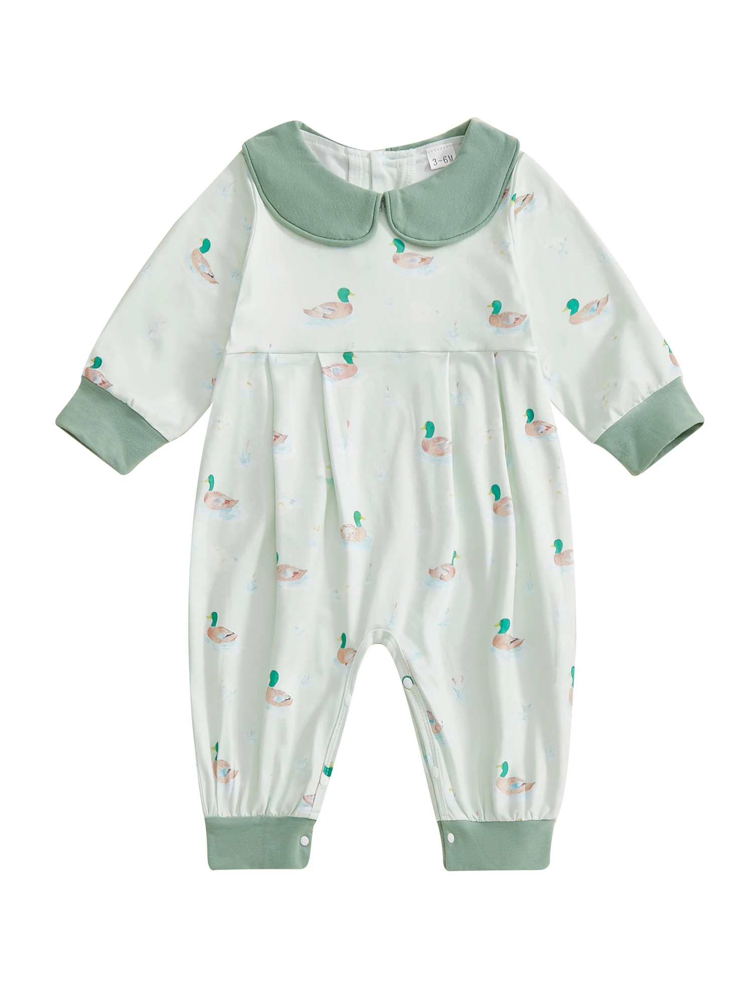 Baby Girls Fall Romper Duck Print Doll Collar Long Sleeve Full Length Jumpsuit