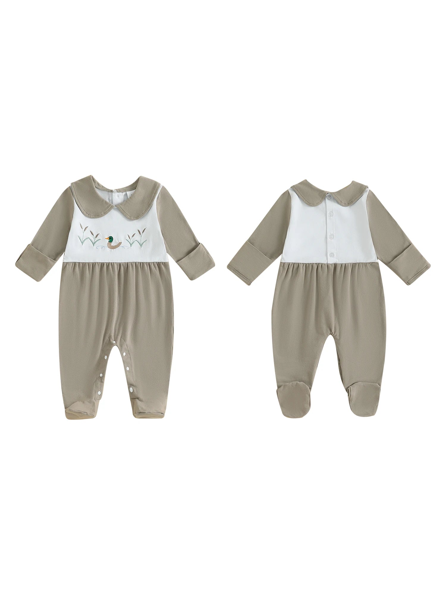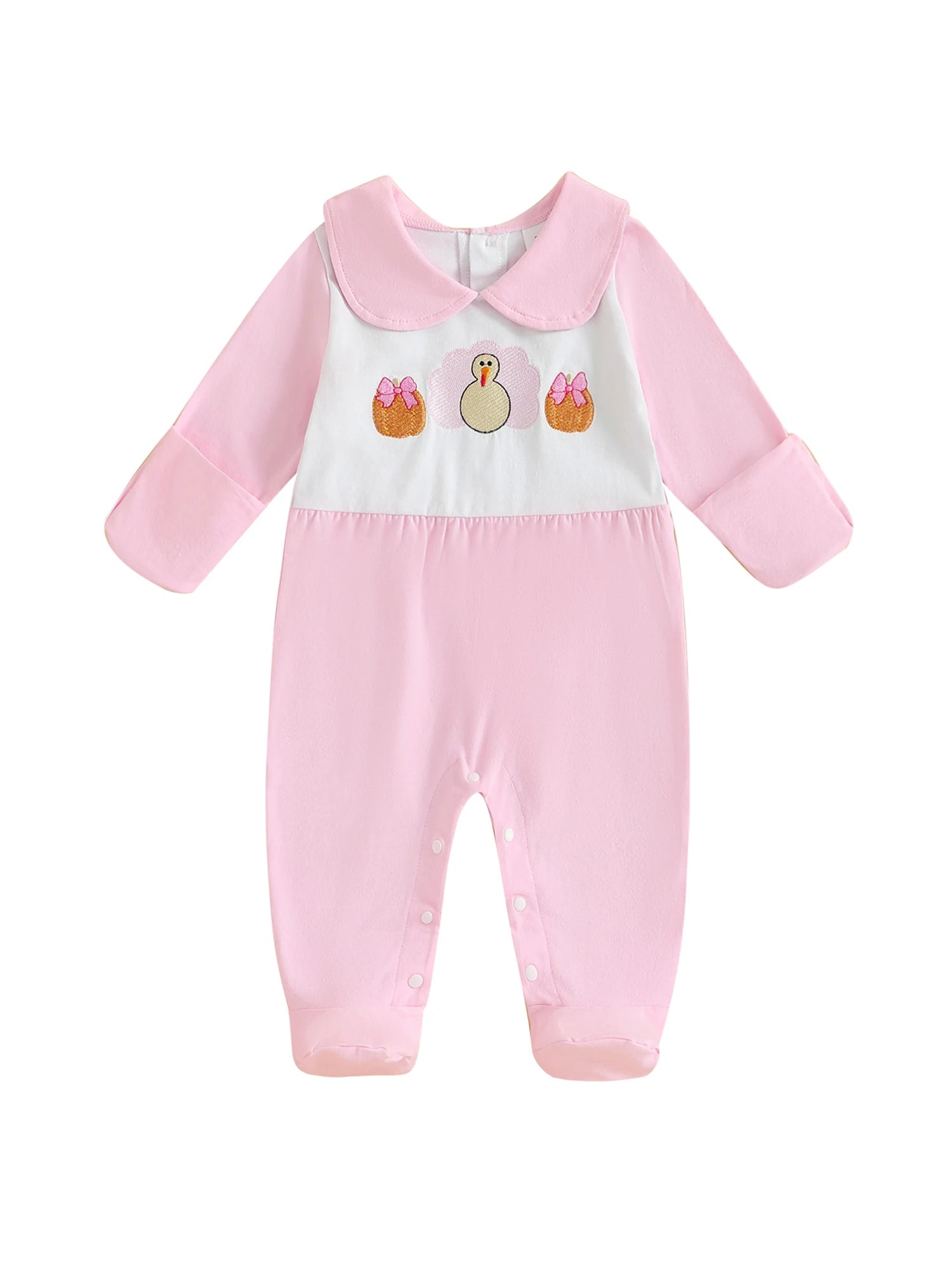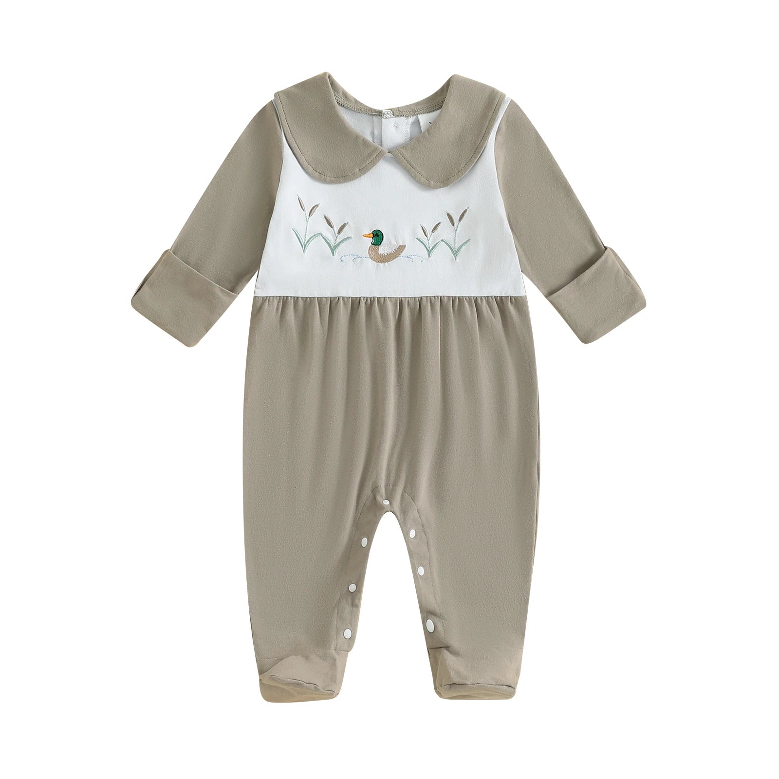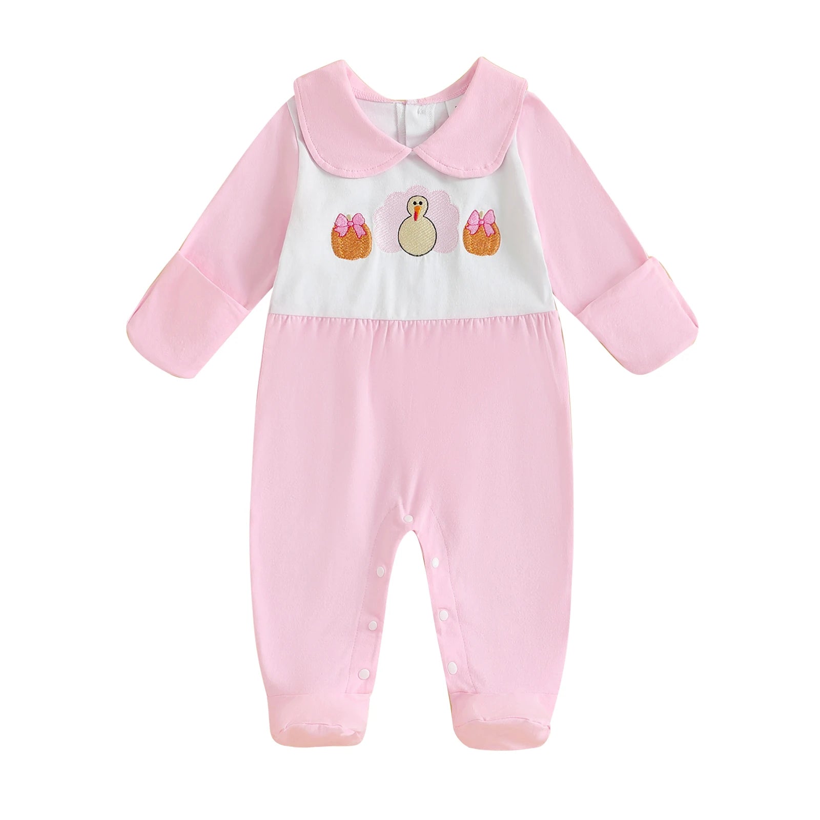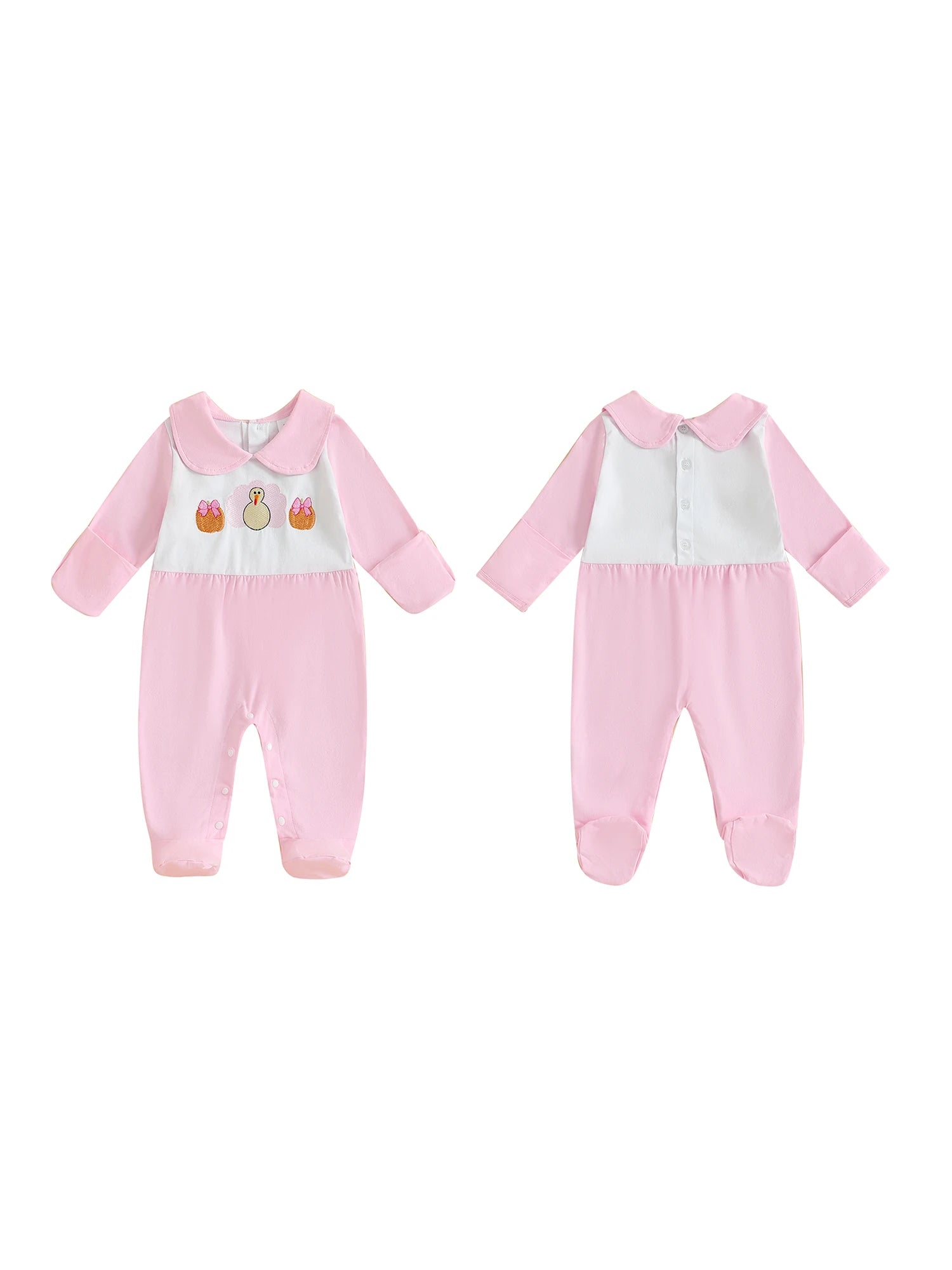 Newborn Baby Fall Footed Romper Animal Embroidery Long Sleeve Lapel Full Length JumpsuitSize(cm)