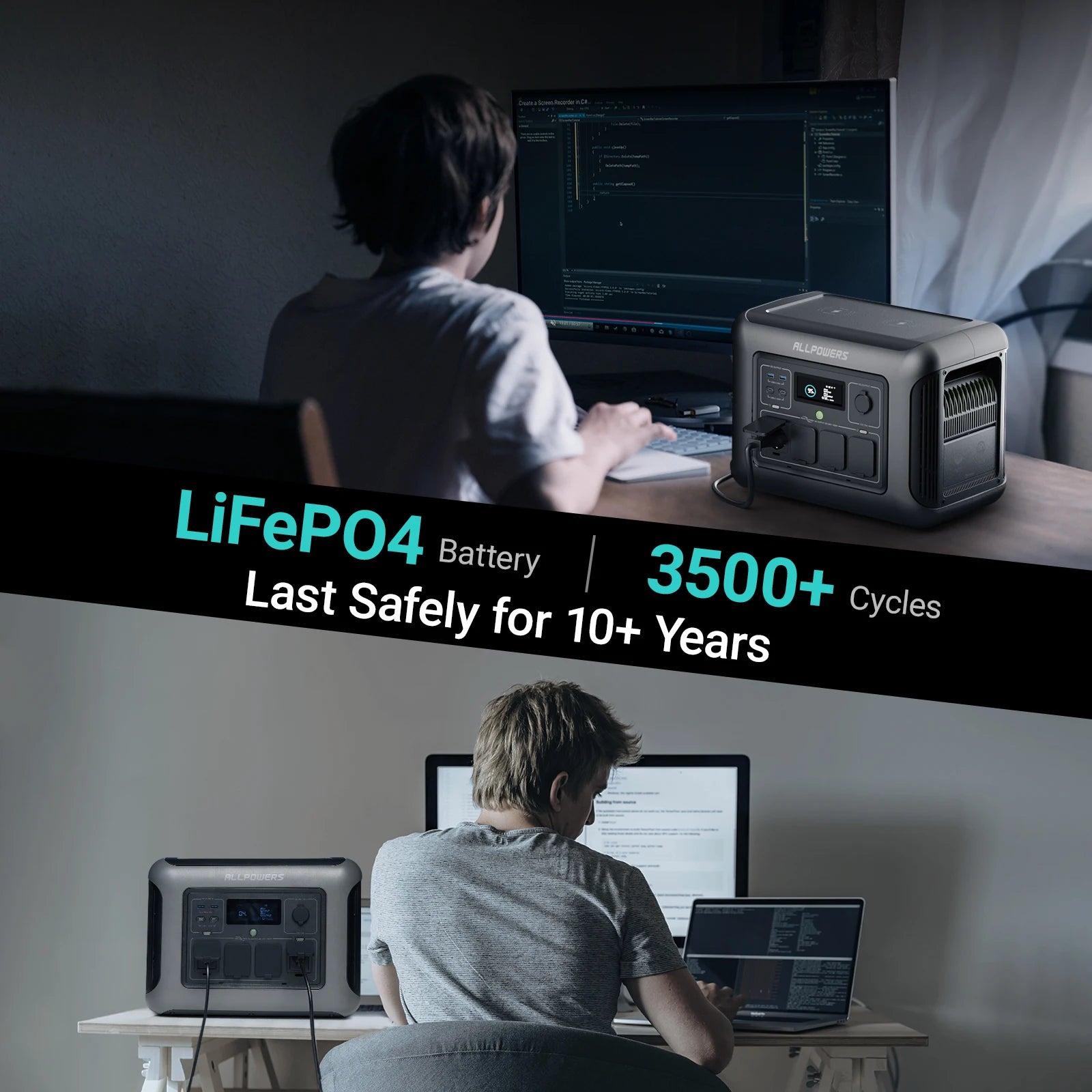 【Extremely long lifespan LFP battery】: Charge the ALLPOWERS R1500 with your LiFePO4 battery over 3500 times before its capacity drops to 80%. The R1500 can be used for more than 10 years even if charged once a day. The R1500 Powerstation features advanced BMS protection that monitors voltage, current and temperature to ensure the safety of the R1500 in all circumstances .