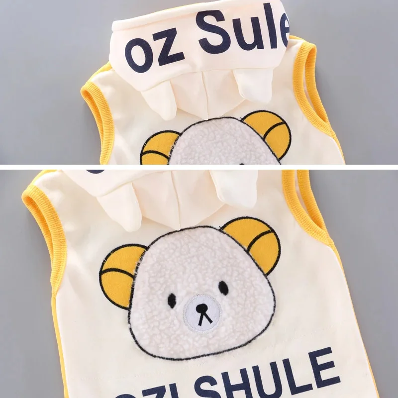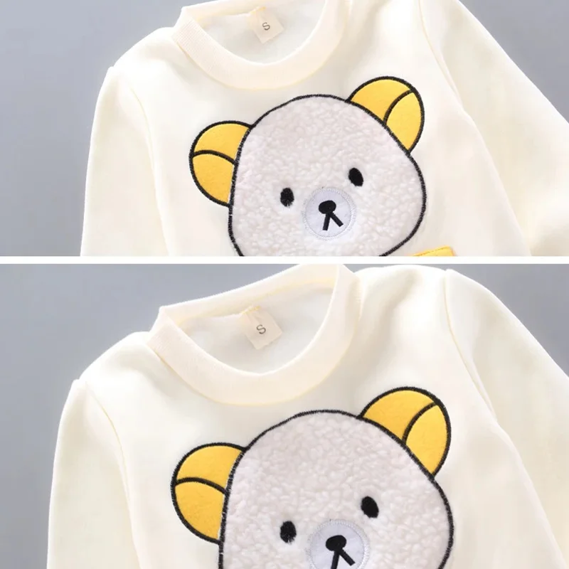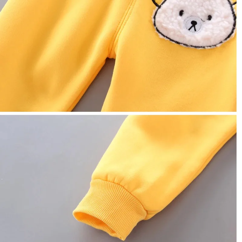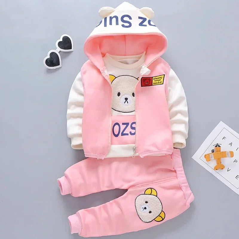 Autumn Winter Baby Girls Cute Bear Clothes Boys Thick Hooded Vest With Long Sleeve Top And Pants 3PCS Sets Kids Warm Tracksuits