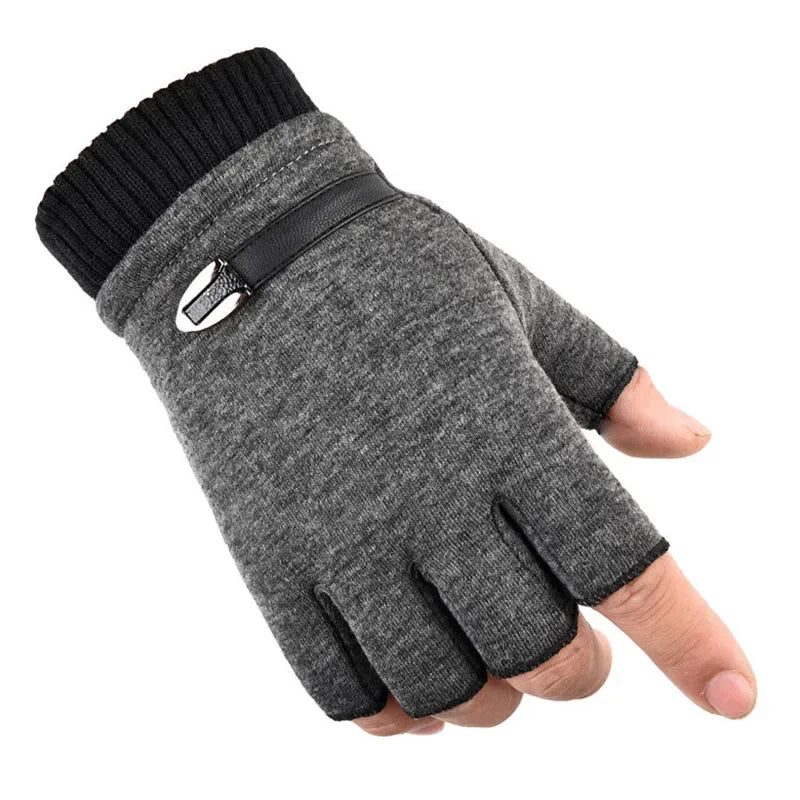Autumn Winter Fleece Lined Half Fingers Gloves Men Male Outdoor Driving Riding Warm Fingerless Mittens Punk Hip Hop Gloves