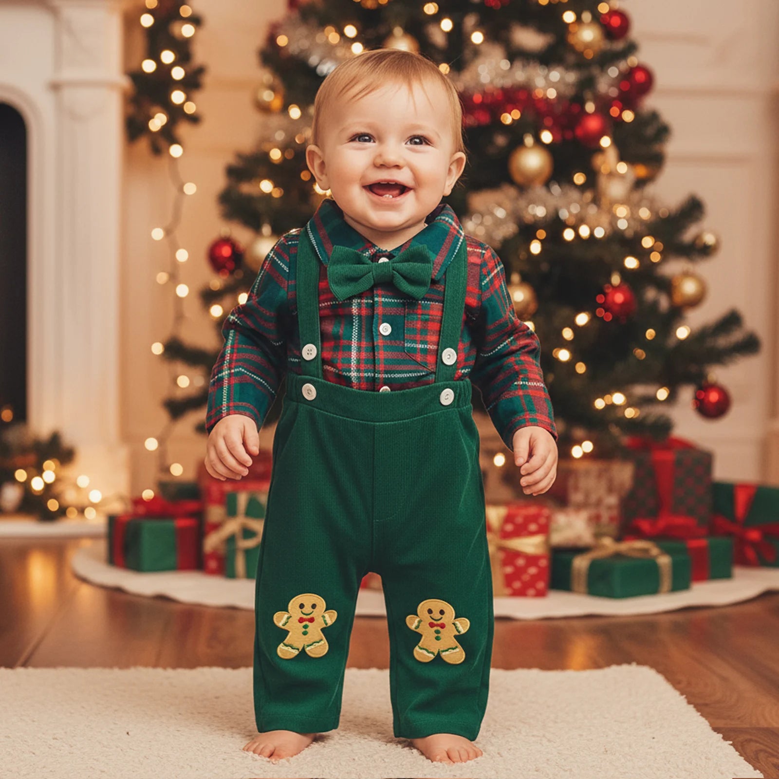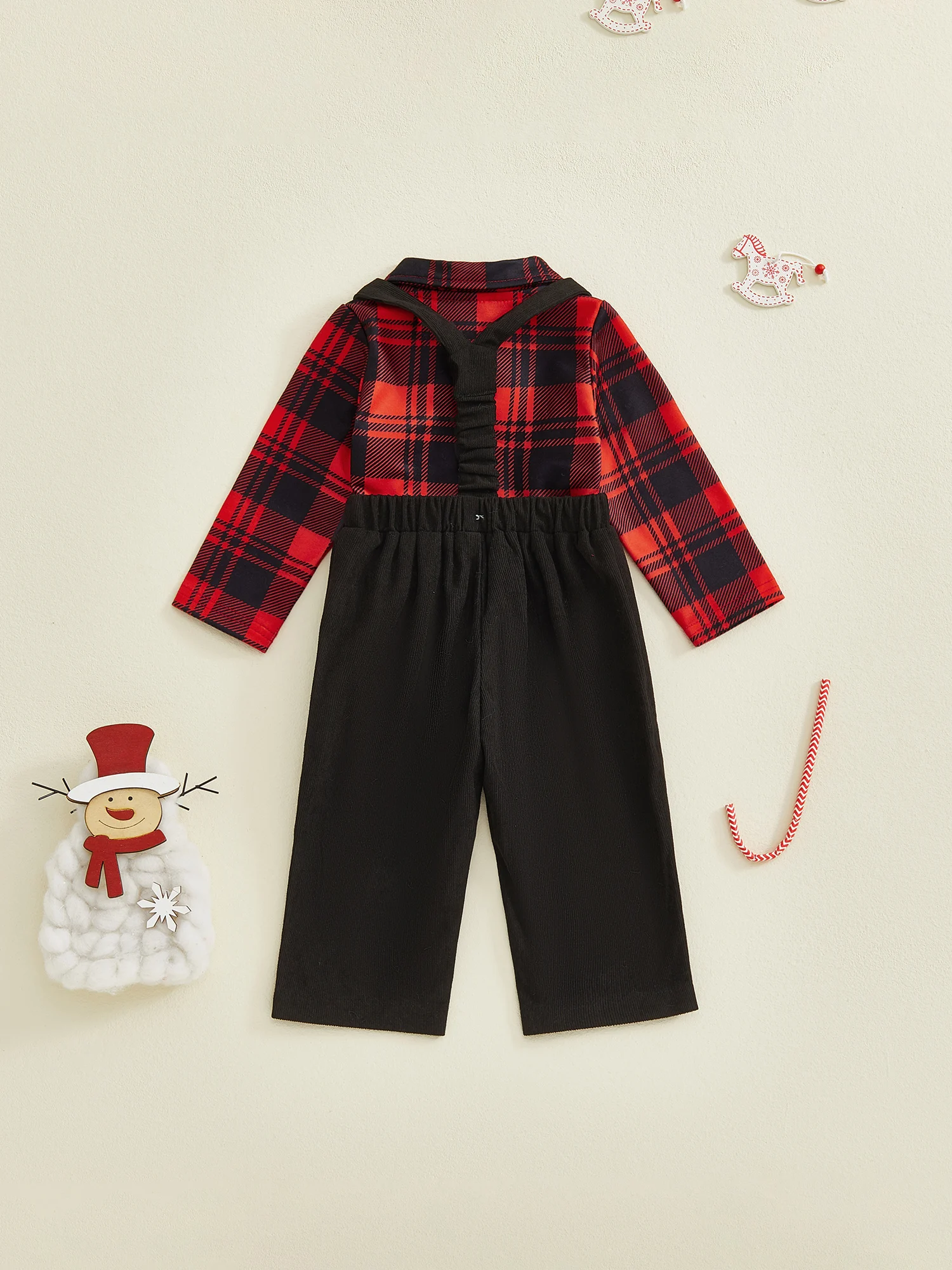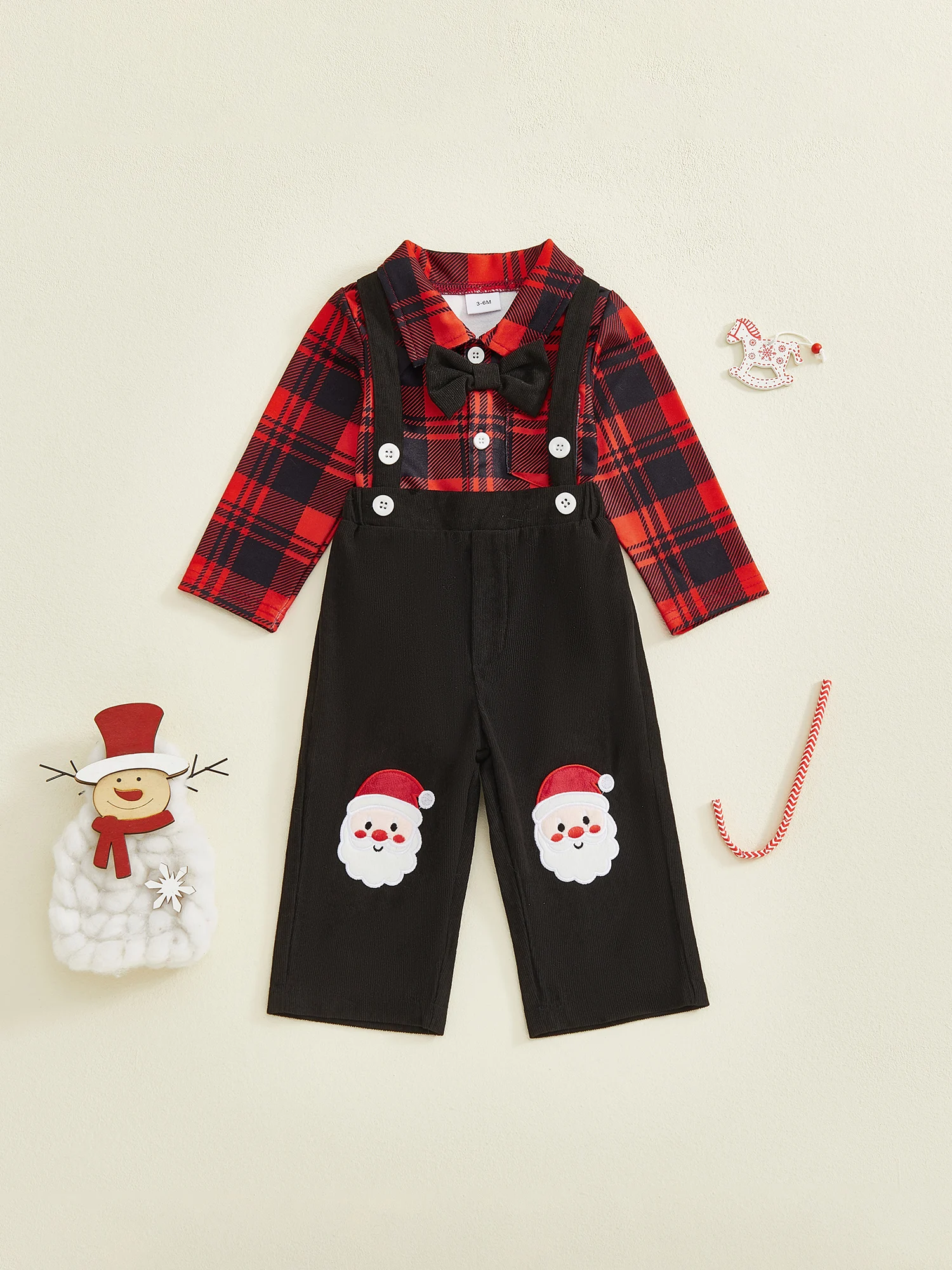 Baby Boy Clothing Cute Christmas Long Sleeve Plaid Romper with Embroidery Overalls Clothes Set 2Pcs Outfits