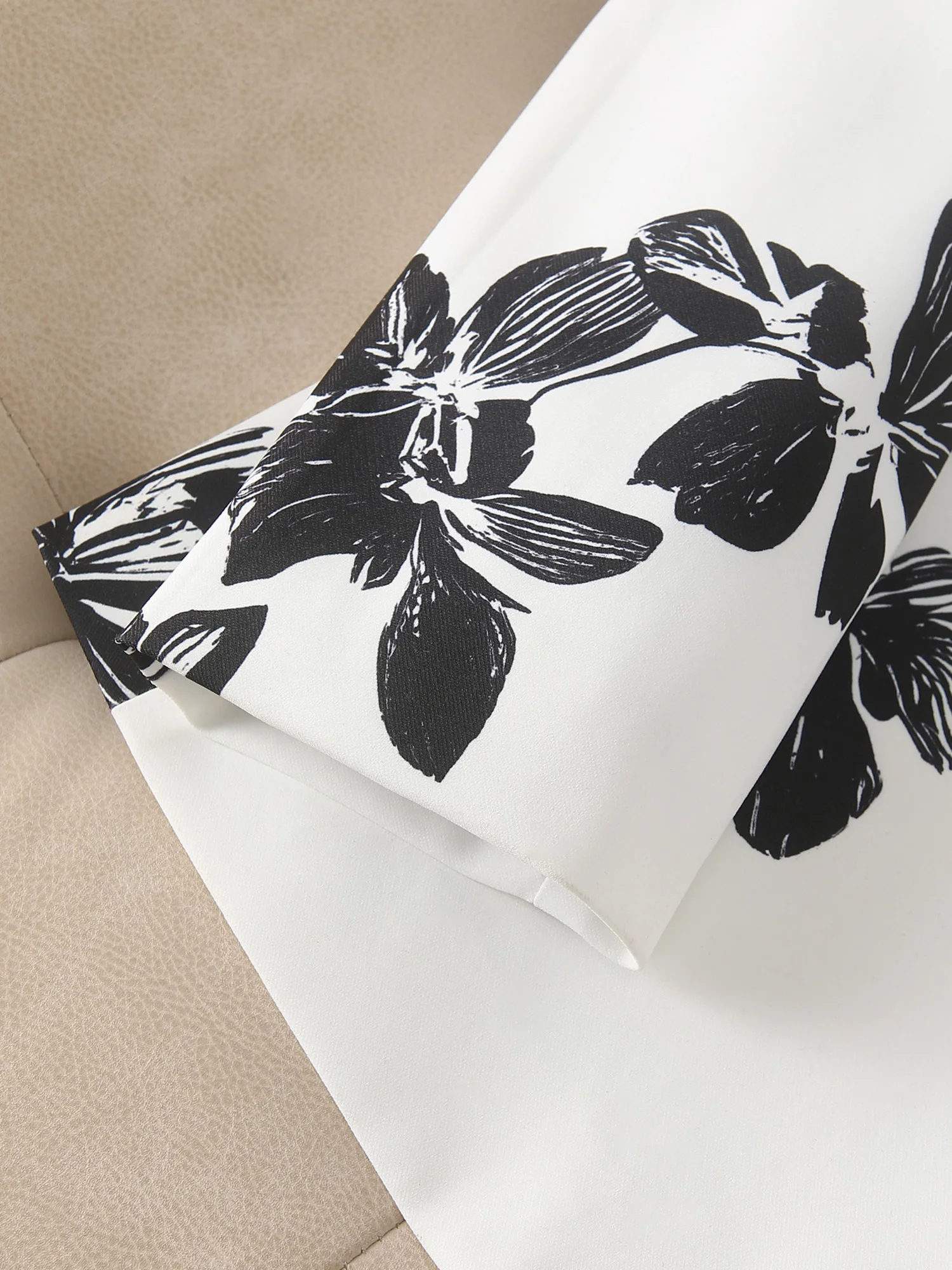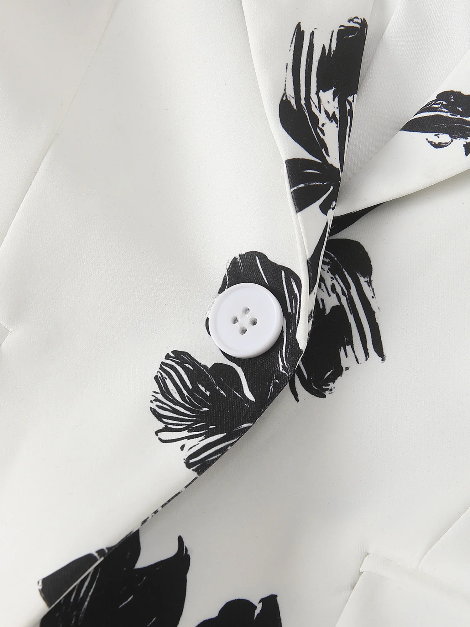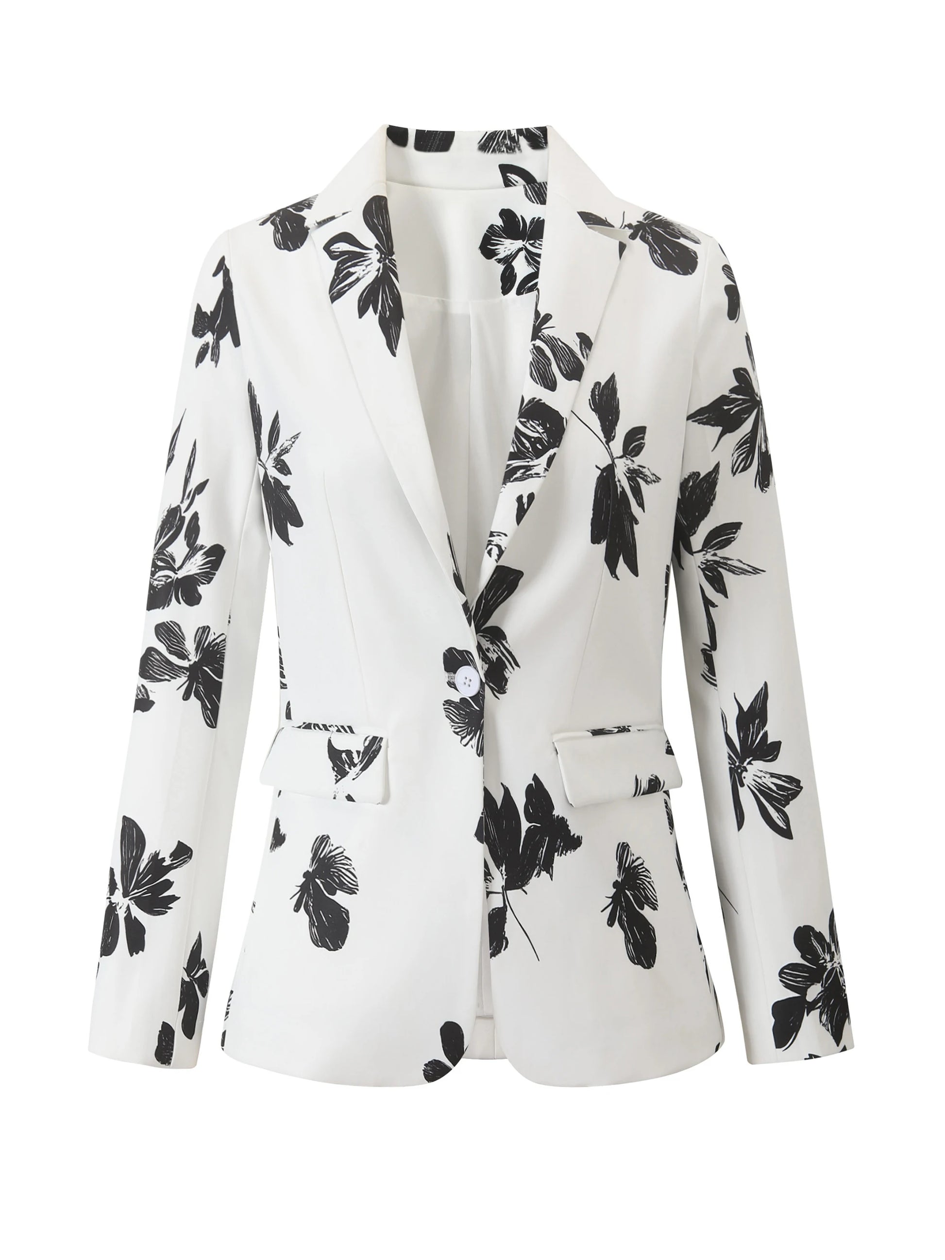 Elegant Floral Print Long Sleeve Blazer for Women - Chic V-Neck Jacket with Pockets, Stylish Outerwear