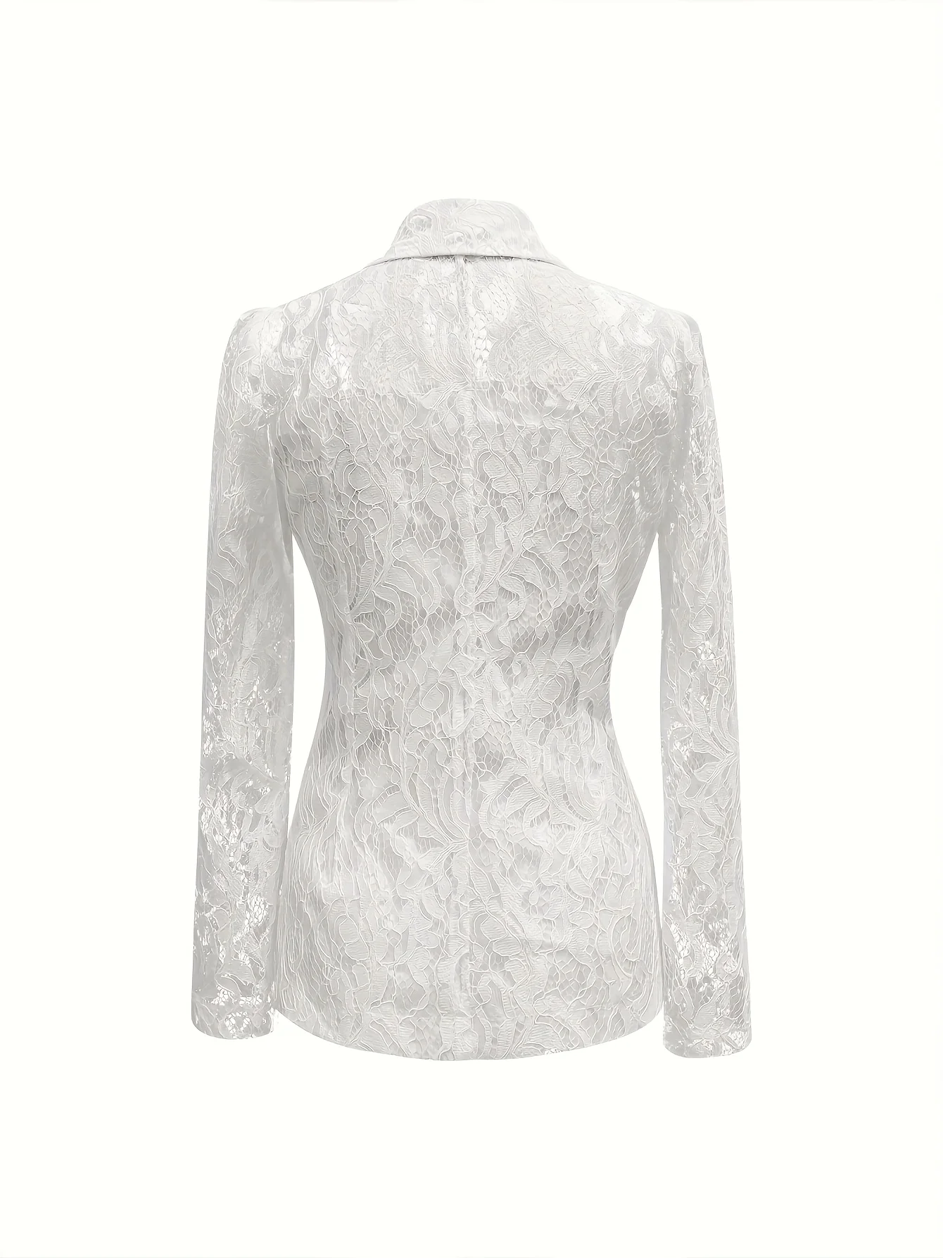 Elegant Lace-Trimmed Women's Single-Breasted Notch Lapel Blazer Jacket - White H-Silhouette Machine-Washable Spring/Summer Light