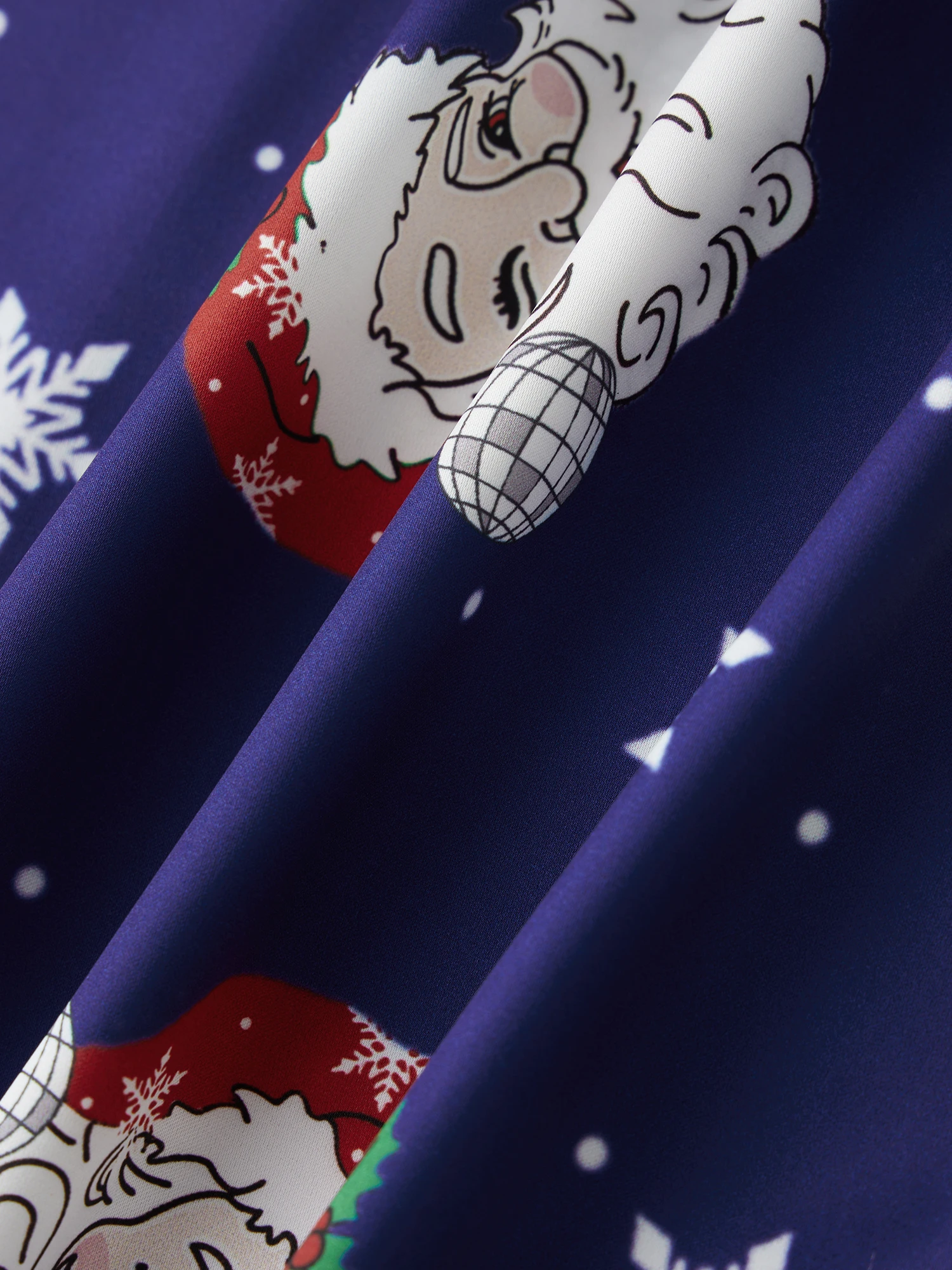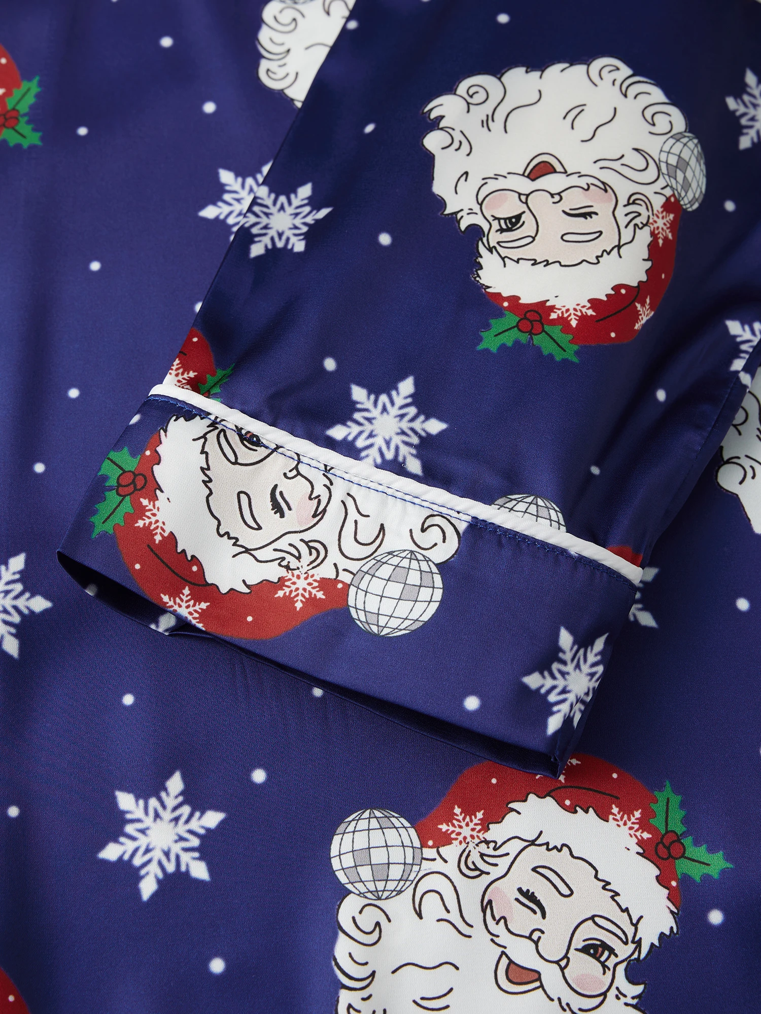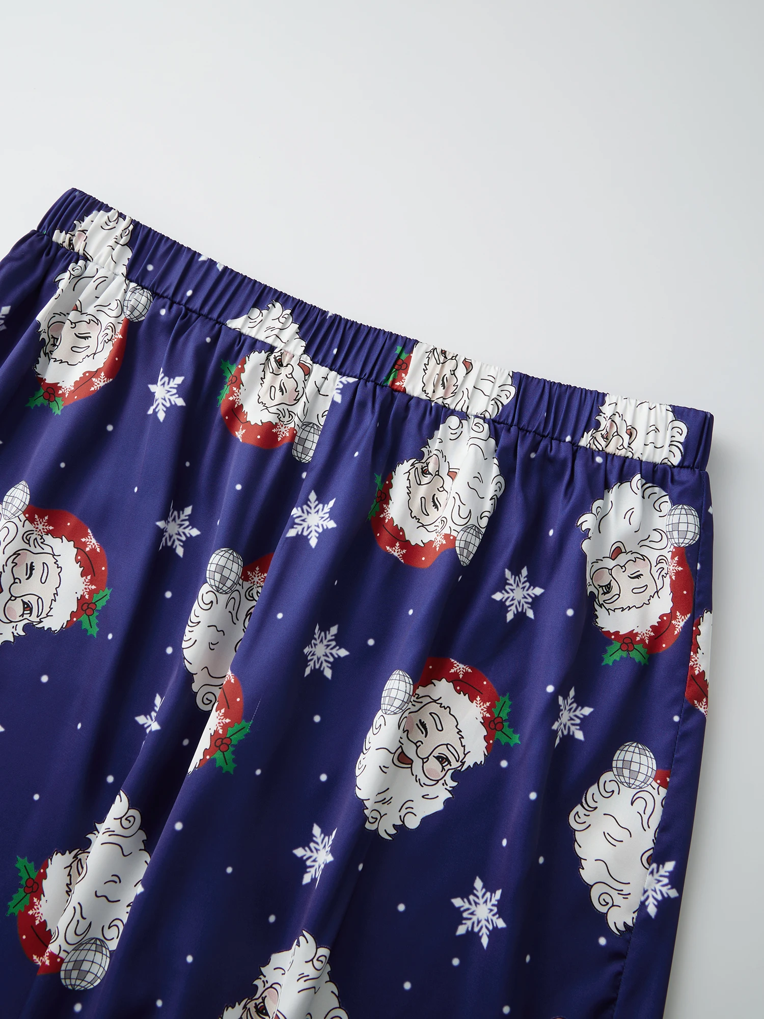 Family Matching Christmas Pajamas Set Dad and Son Santa Print Tops Pants Holiday Satin Pajamas Sleepwear