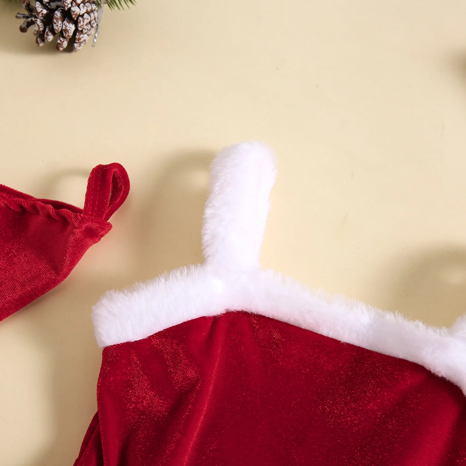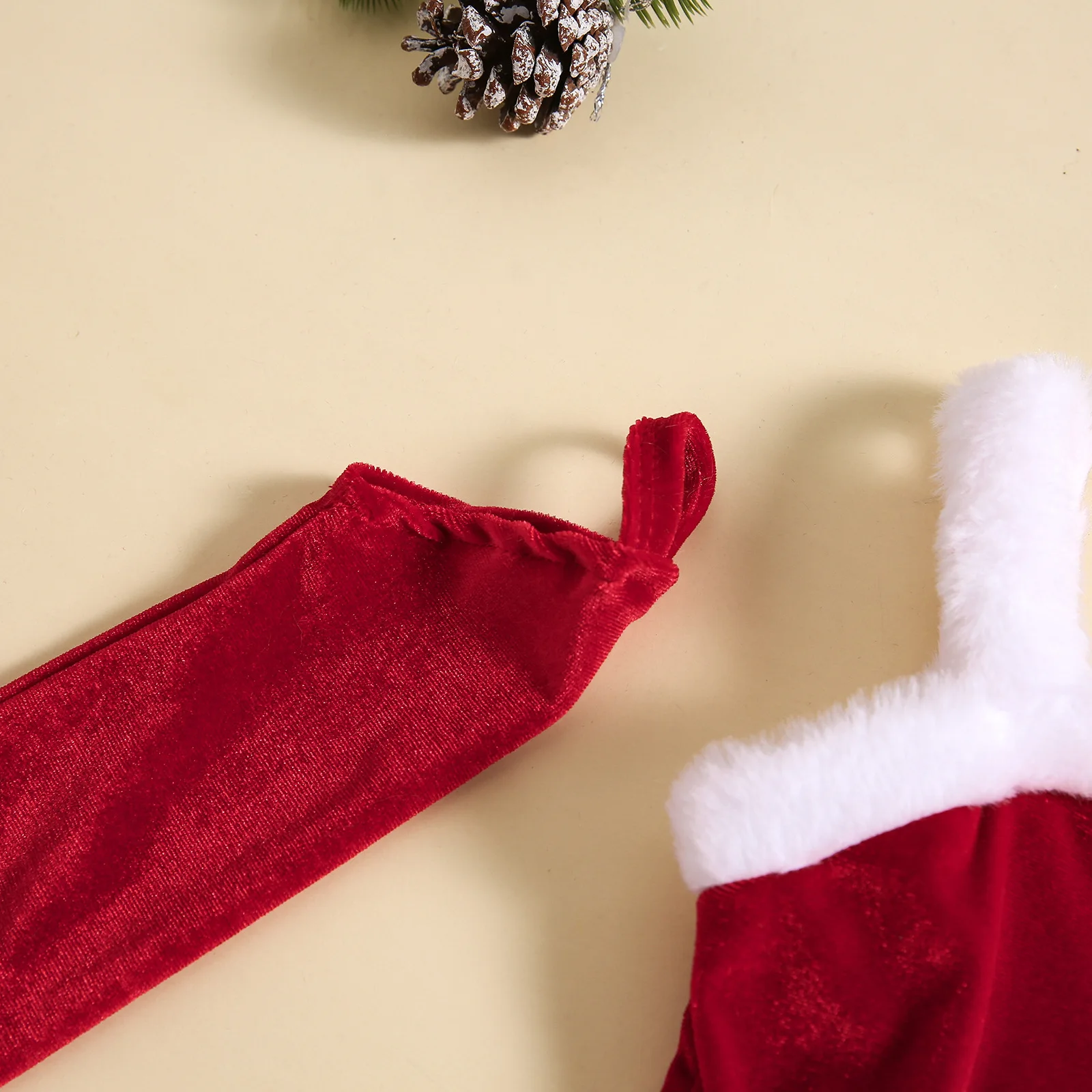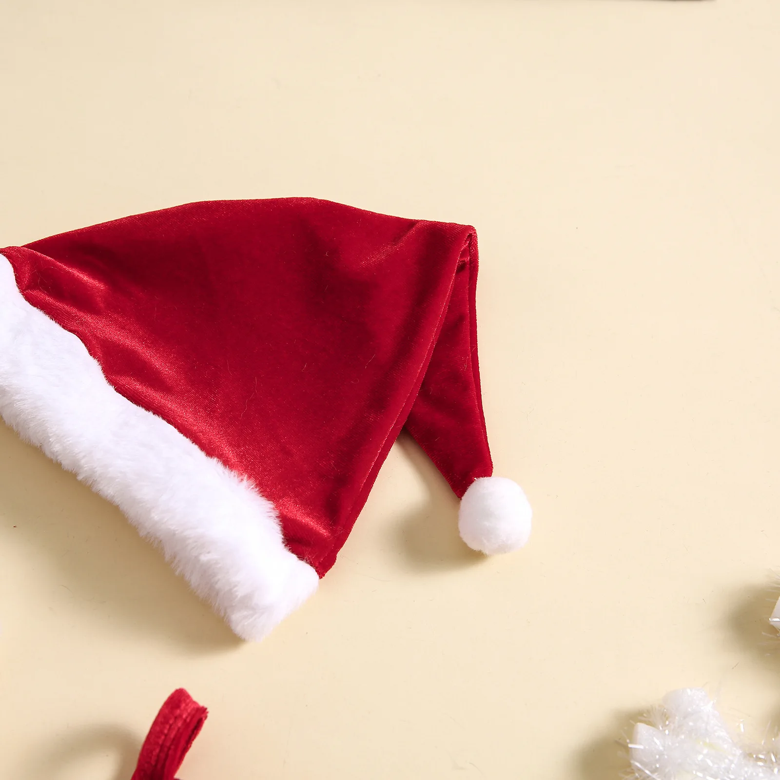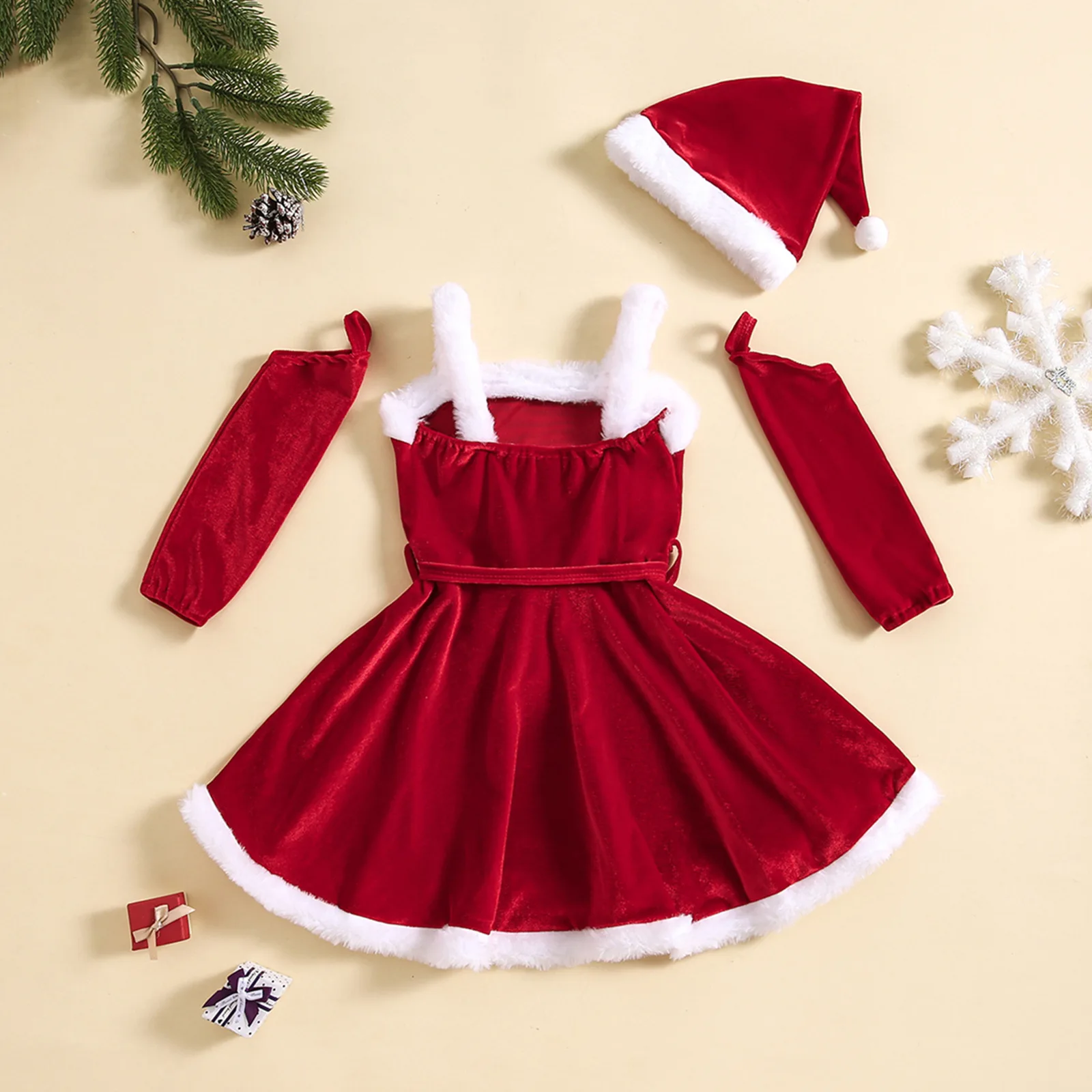 Girls Christmas Dress Sets Autumn Winter Velvet Suspender Dress + Over sleeve + Hat 3 piece Baby Santa Claus Clothes Festival Costume