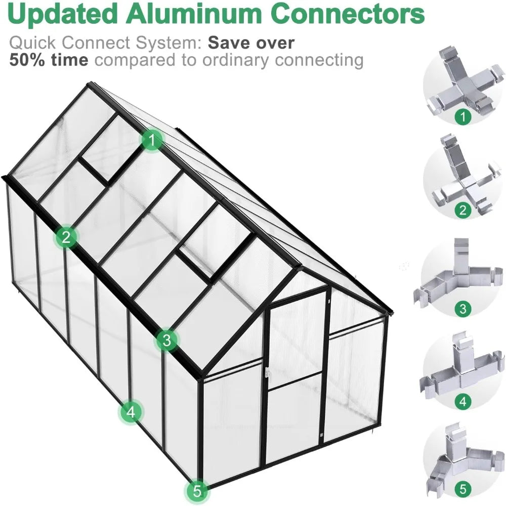 - Heavy Duty Aluminum Frame: Upgraded winter greenhouse kit is made of thickened aluminum which is stable and rust proof with reinforced triangles connectors for added stablilty. Snow Load Capacity:20 psf