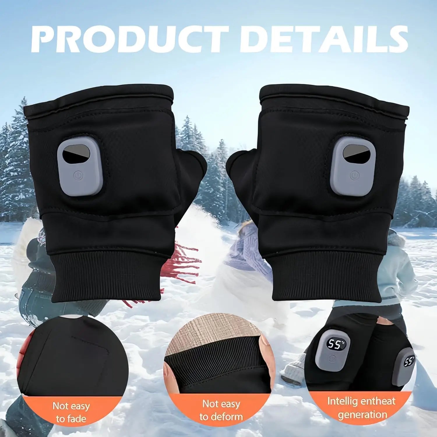 Heated Fingerless Gloves for Women, Rechargeable Electric Heated Gloves with Digital Display, Smart Thermostatic Outdoor Winter