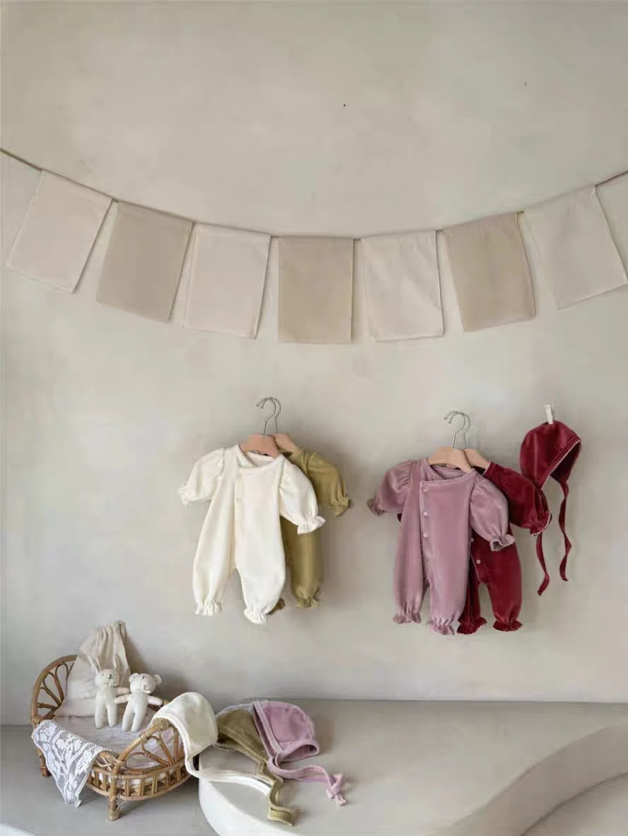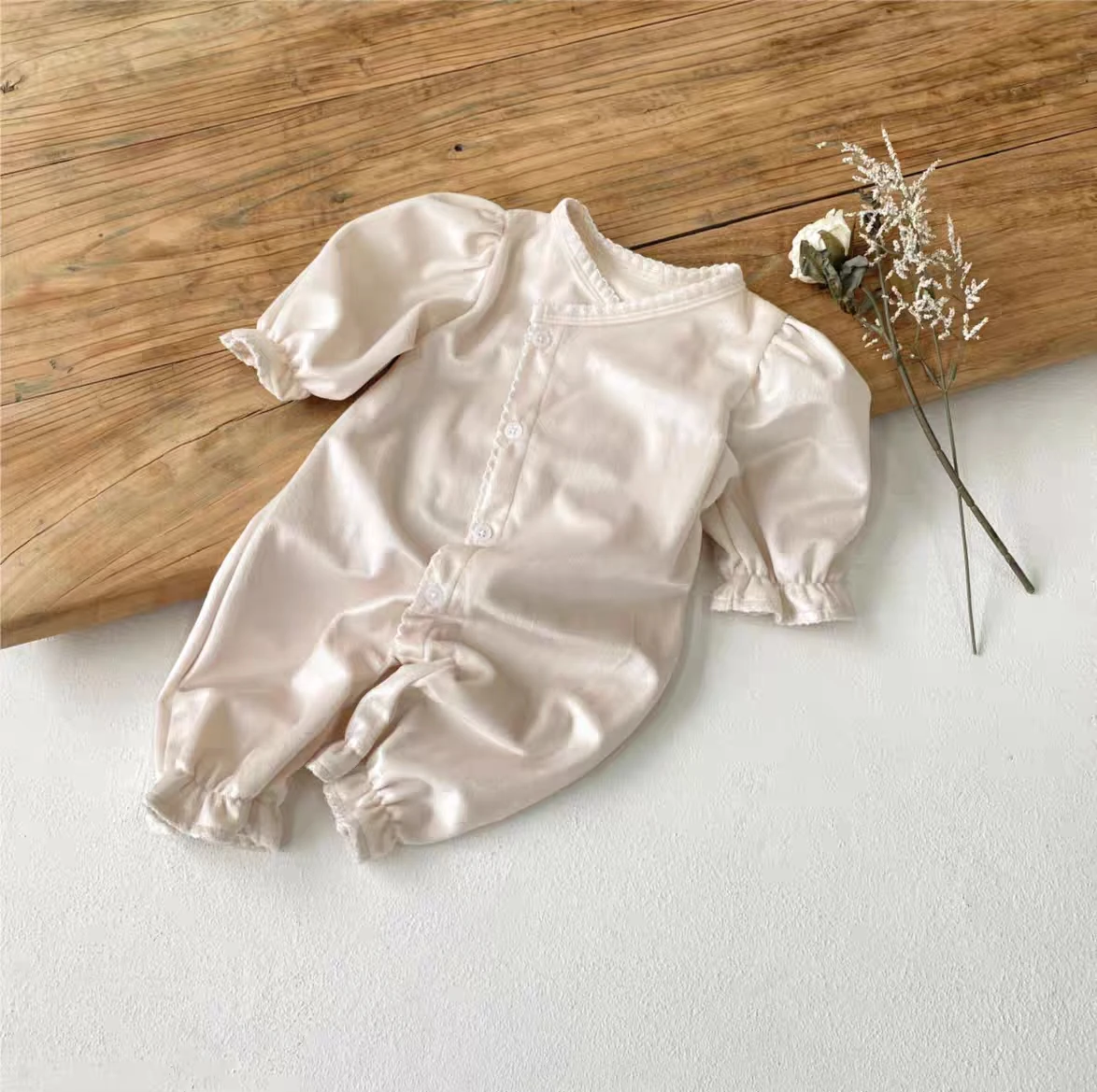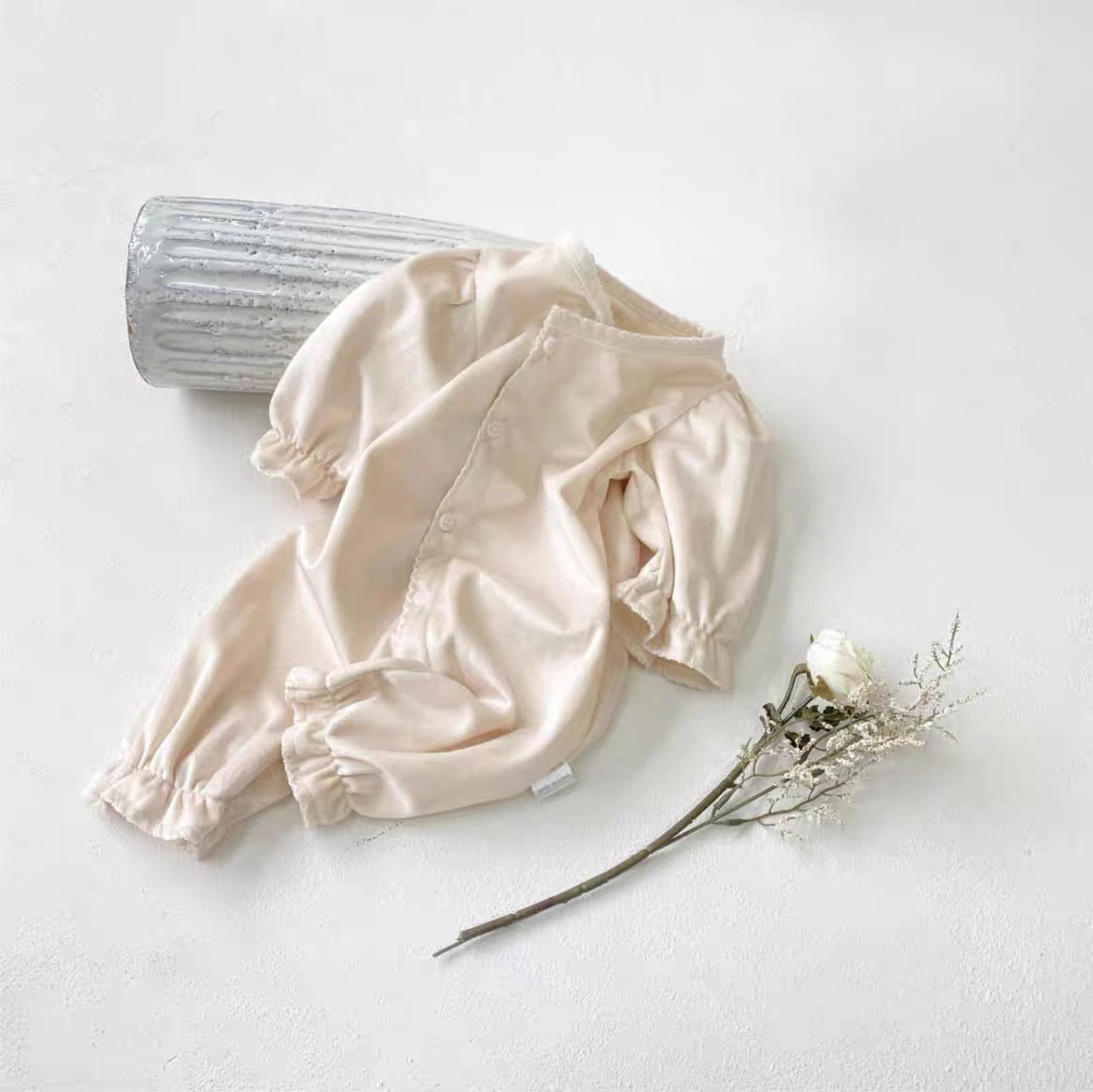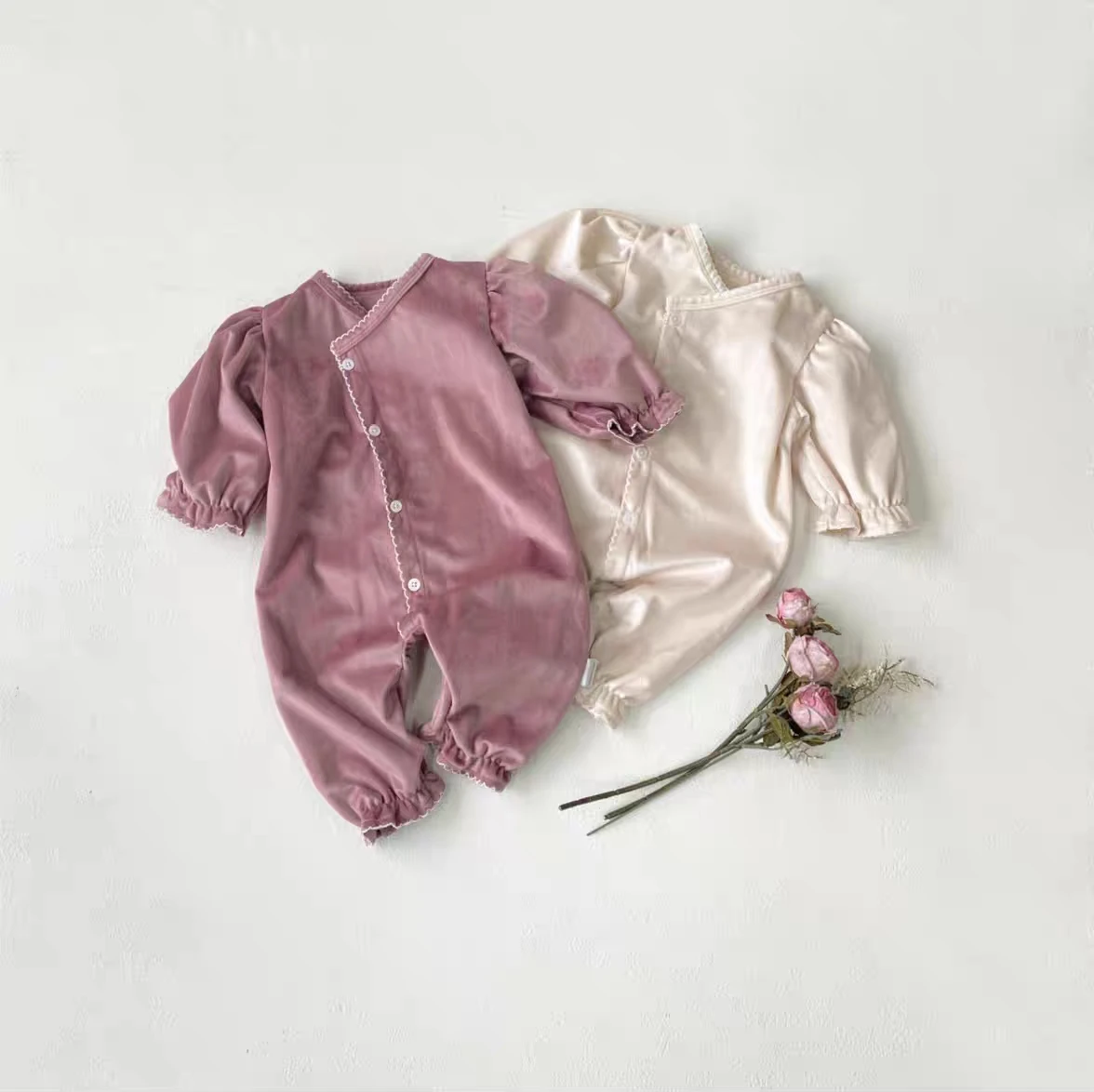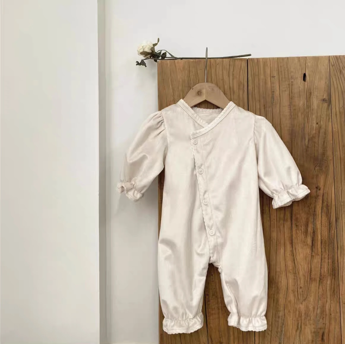Spring and Autumn new baby jumpsuit round neck slanted collar single breasted long sleeved crawling suit