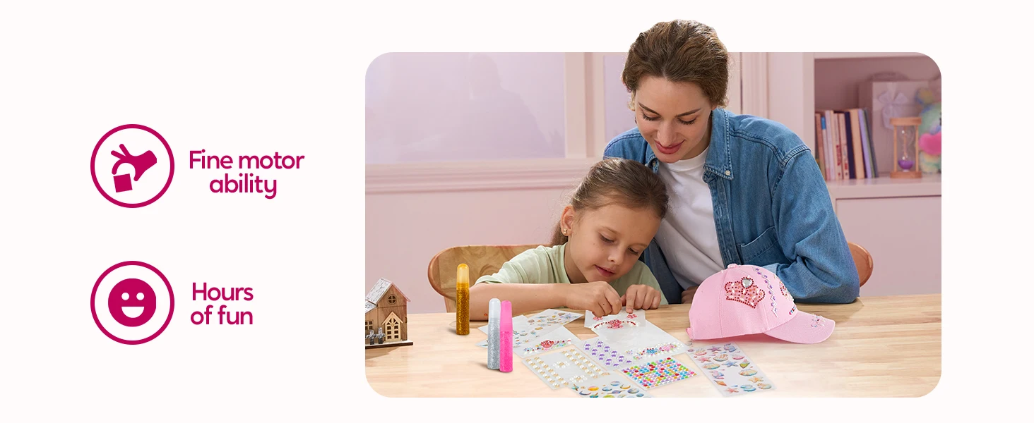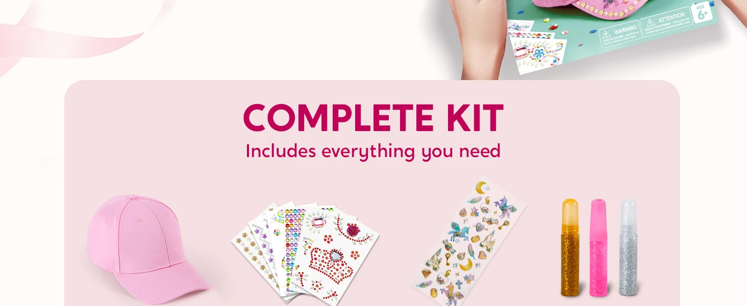 Creative Design: The plain pink-coloured Baseball cap enables kids to imagine tons of diy design ideas that they would like. Kids can simply improve the caps' overall appearance by simply adding adhesive gems and glitter glues. The stickers have built-in adhesives so won't need to add glue in each sticker. After applying the glitter glue, allow it to dry before using it to sit completely in your cap