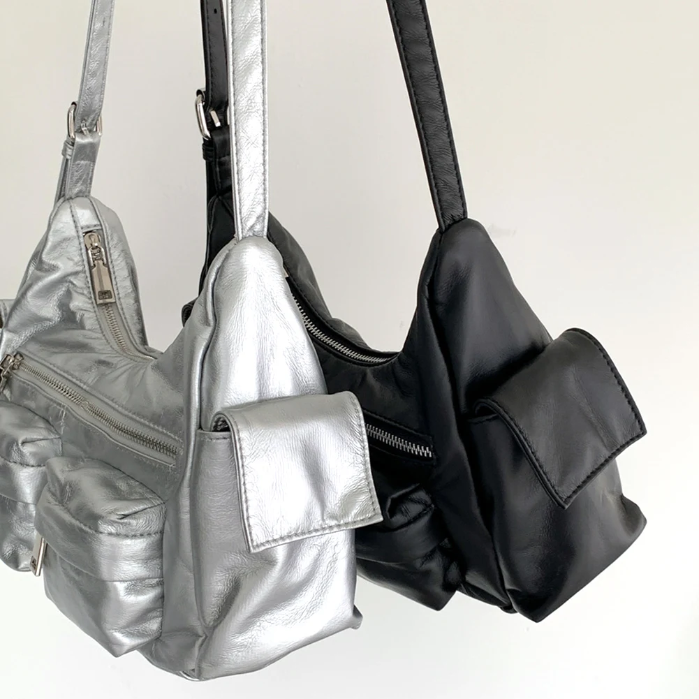 PU Satchel Sling Bag: Multi-Pocket Purse