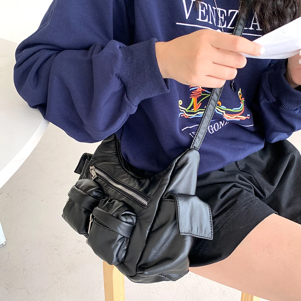 Large Capacity Sling Bags Women's Multi-Pocket Purse Crossbody Hobo Bag Girl Stylish Purse Ladies Solid Versatile Crossbody Bag