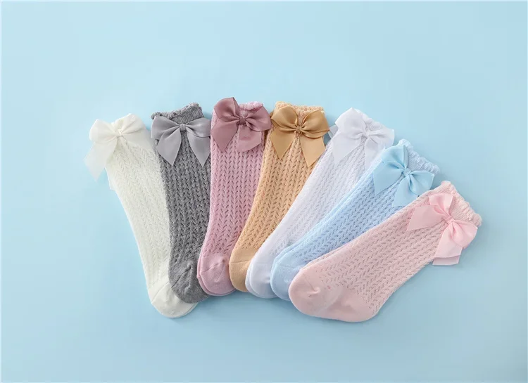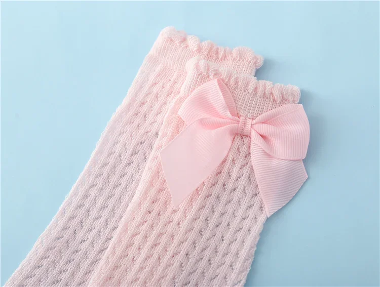 lawadka 0-24M Baby Girl Socks Toddler Big Bow Cotton Summer Mesh Infant Knee Socks Newborn Long Princess Socks For Girls 2024