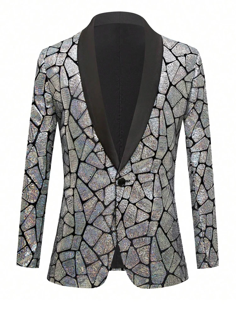 Men's single piece shiny sequin suit jacket, fashionable tailcoat, suitable for parties, weddings, banquets, dances
