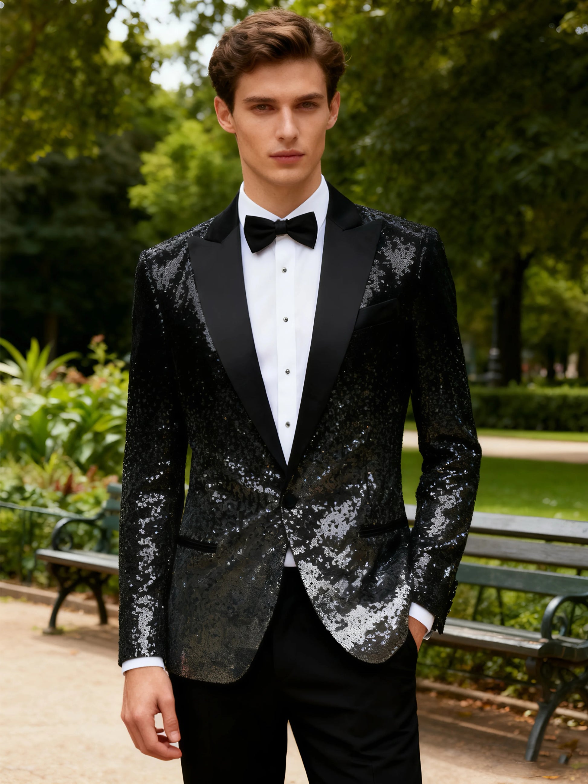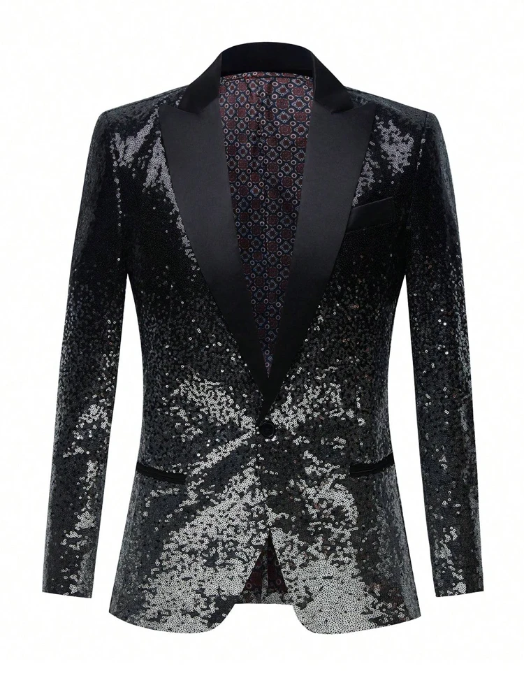 Men's single-piece top sequin sparkling prom suit jacket single button and sports jacket tuxedo, suitable for wedding banquet