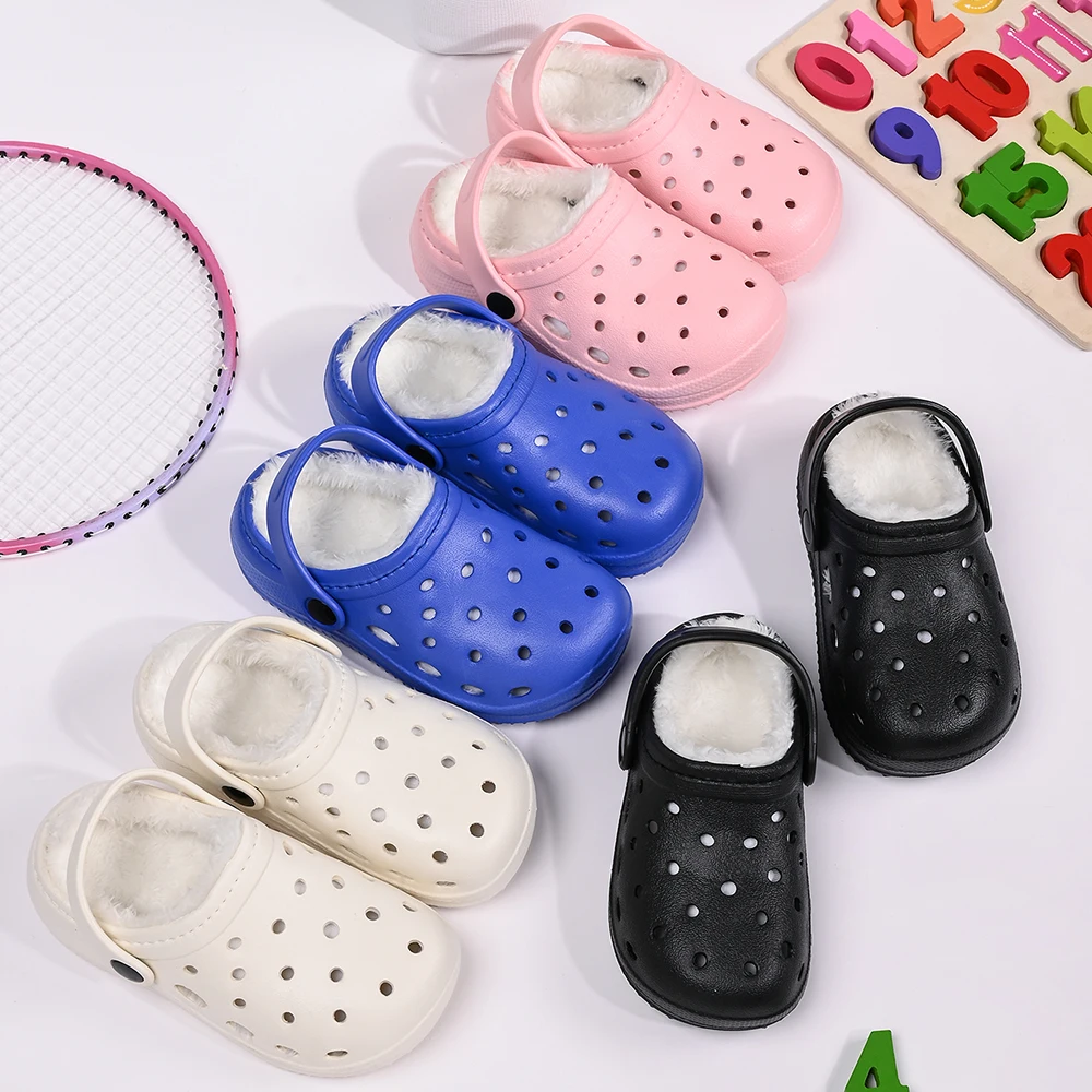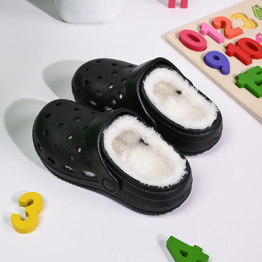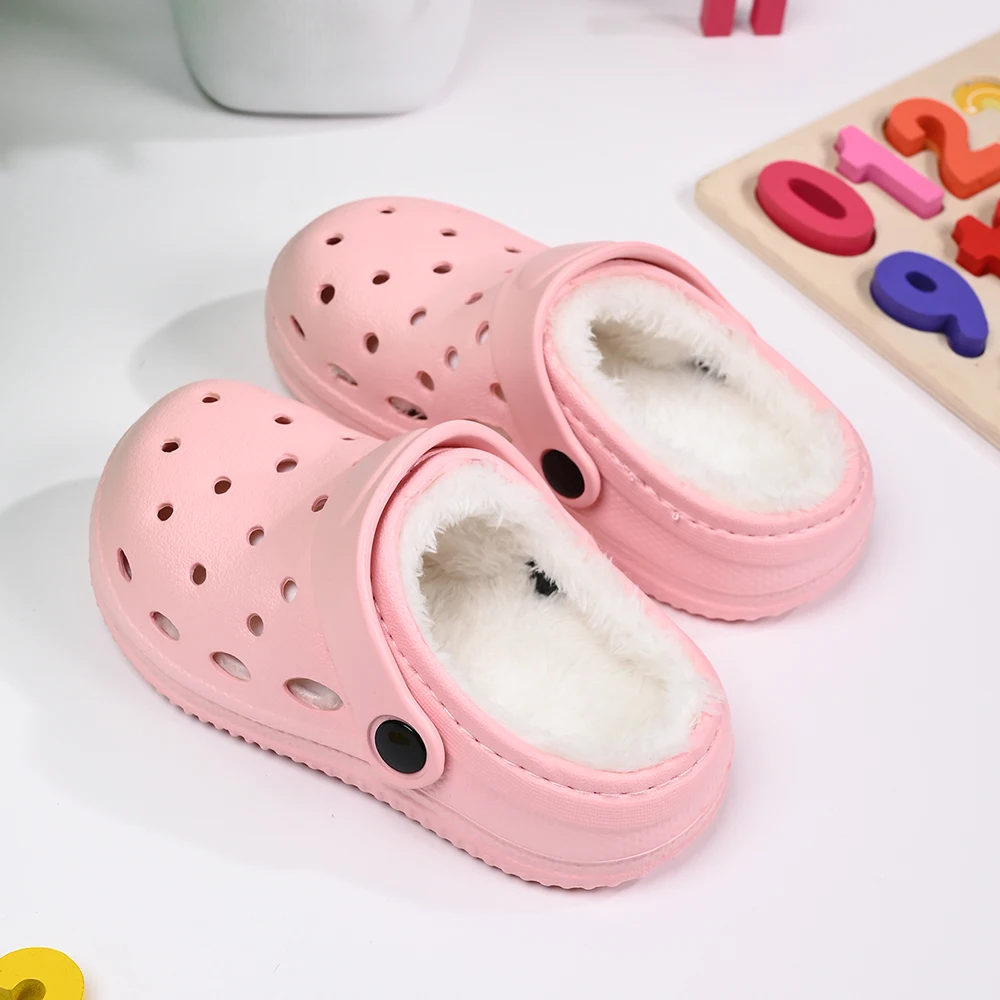New Winter Concise Plush Slippers Children's Non Slip Soft Sole Kids Boys and Girls Warm Home Cotton Shoes