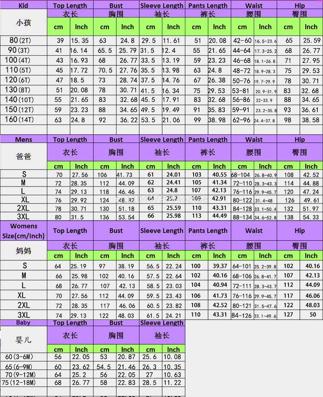 Age Range: Baby 3 mo - 18 mo, kids 2 T - 14 T, Adults S - 3XL