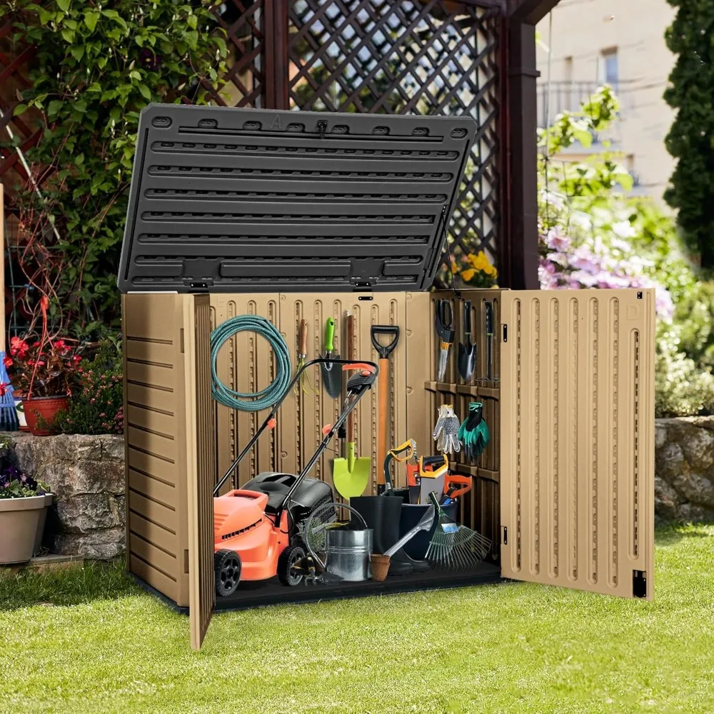 Outdoor Resilient Storage Shed, 35 Cu Ft Lockable Weatherproof Resin Unit, Fit for Garden Equipment, Simple Assembly (Brown)