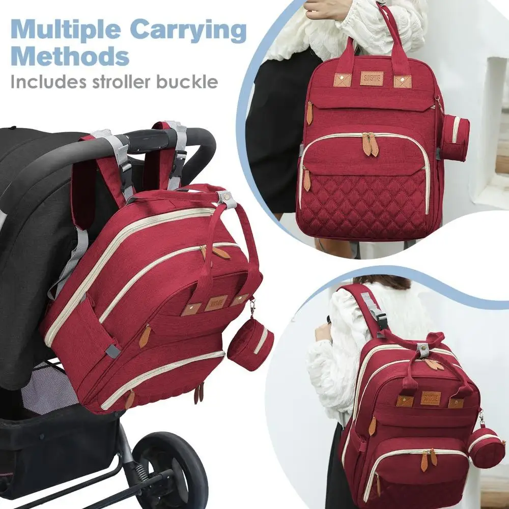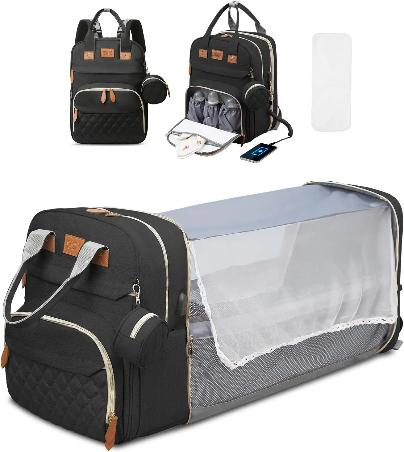 Large Diaper Bag with Changing Station, Fold able Diaper Bag Backpack with Bed, Diaper Bag with Insulated Pockets