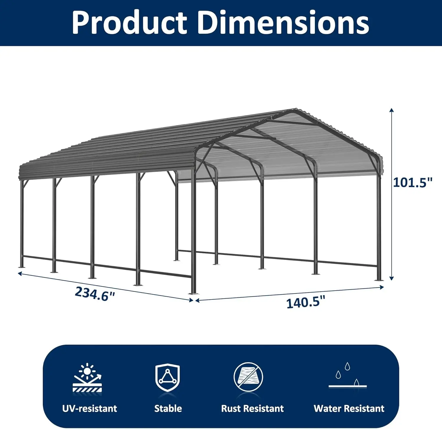 Multiple Sizes Available – Choose from different carport dimensions (such as 10 x 15 FT, 20 x 12 FT 20 x 20 FT, 20 x 30 FT, 20 x 40 FT) to fit your storage or vehicle protection needs.