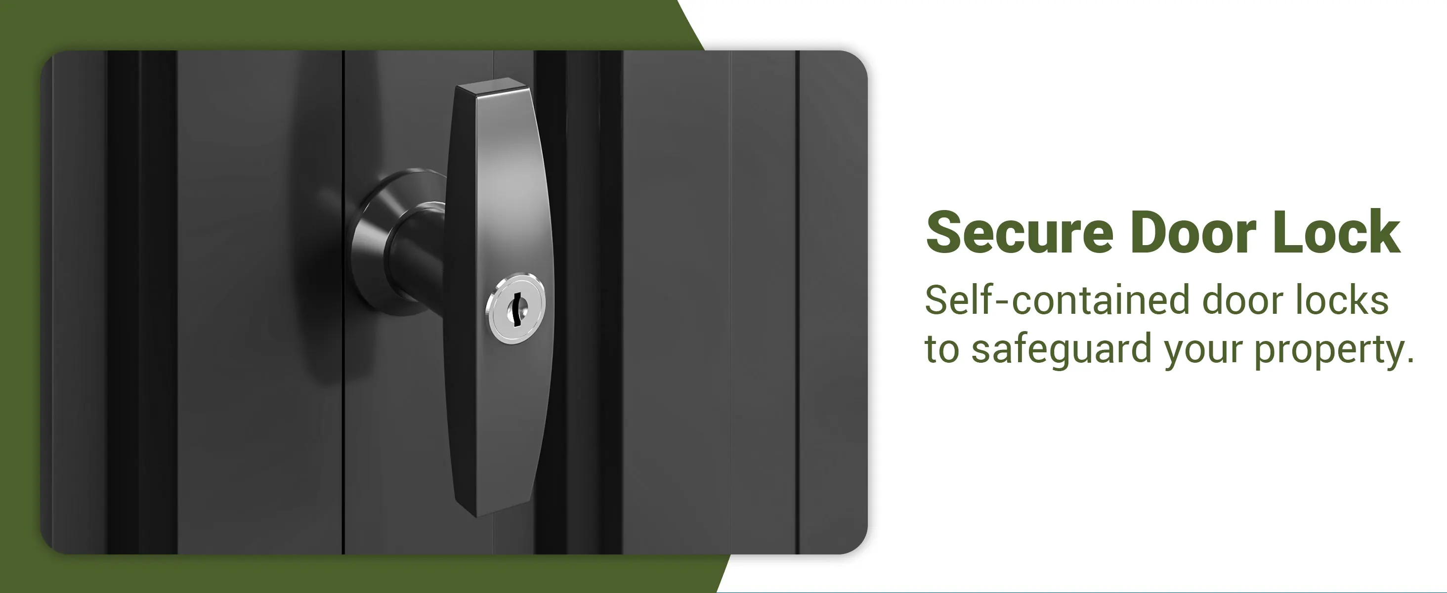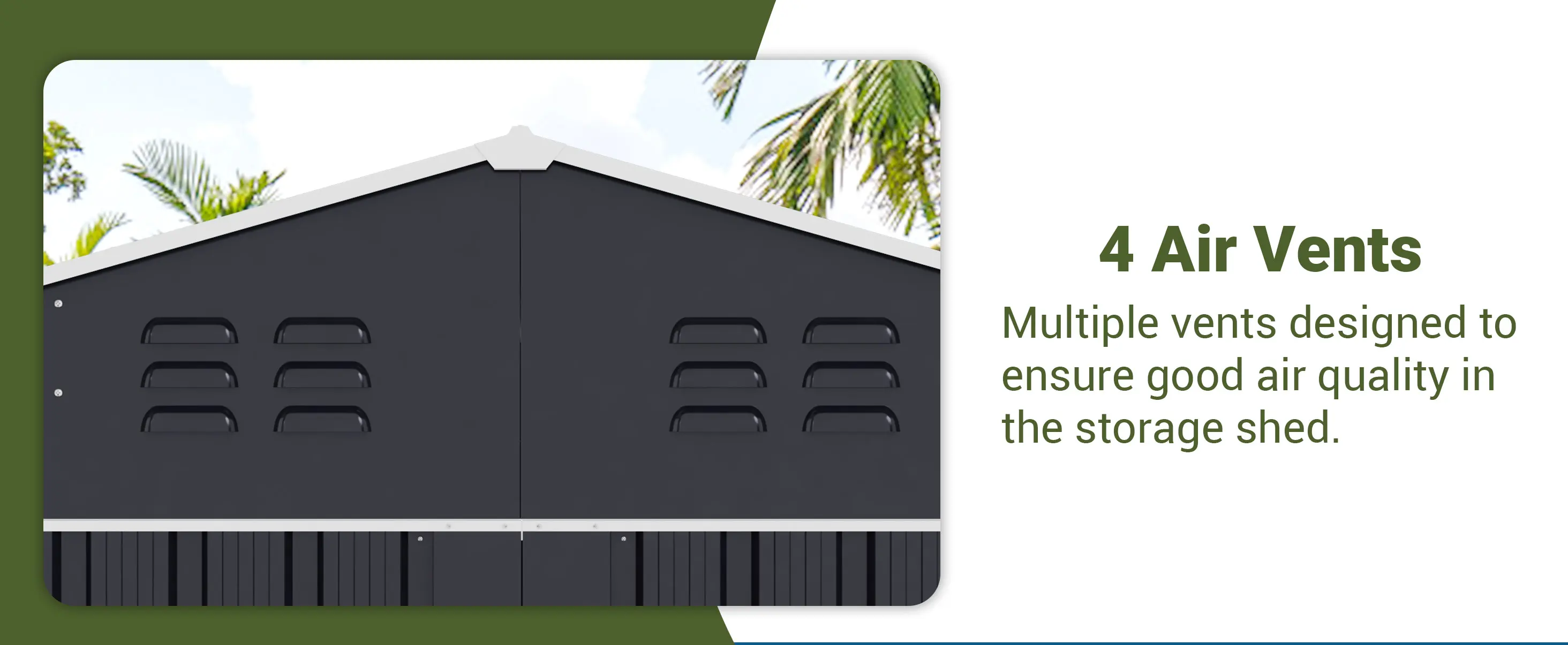 Secure & Practical Design – Features lockable doors for safety, a sloped roof for efficient rainwater drainage, built-in vents for better airflow, and reinforced corners for stability.