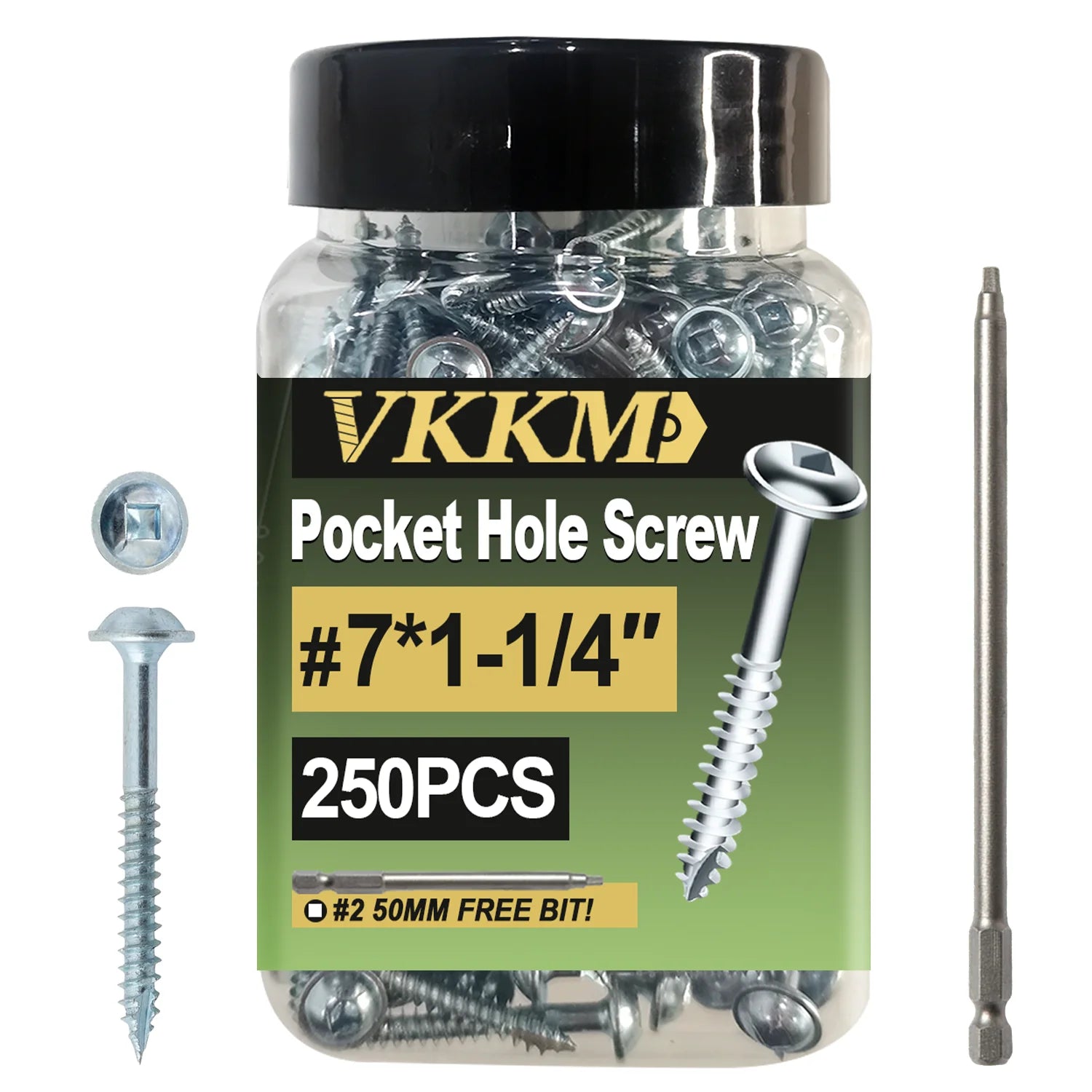 VKKM Galvanized Pocket Hole Screws #7 #8 1-1/4" 1-1/2" 200-300PCS w/ Free Drill Bits for Woodworking Tools